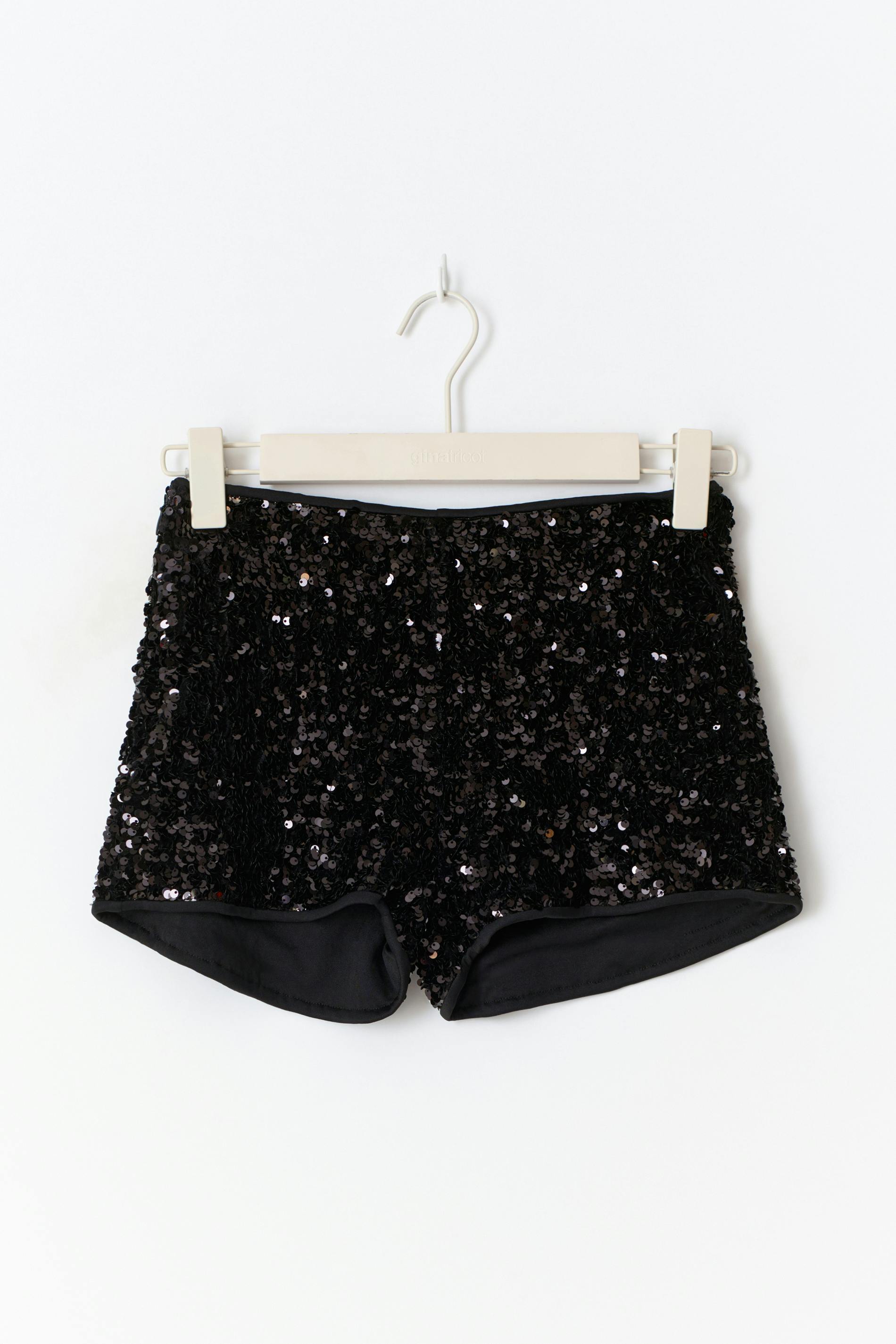 Korta shorts i paljett med en figurnära passform. Shortsen är svarta och har en normal midja. De har en dragkedjestängning.