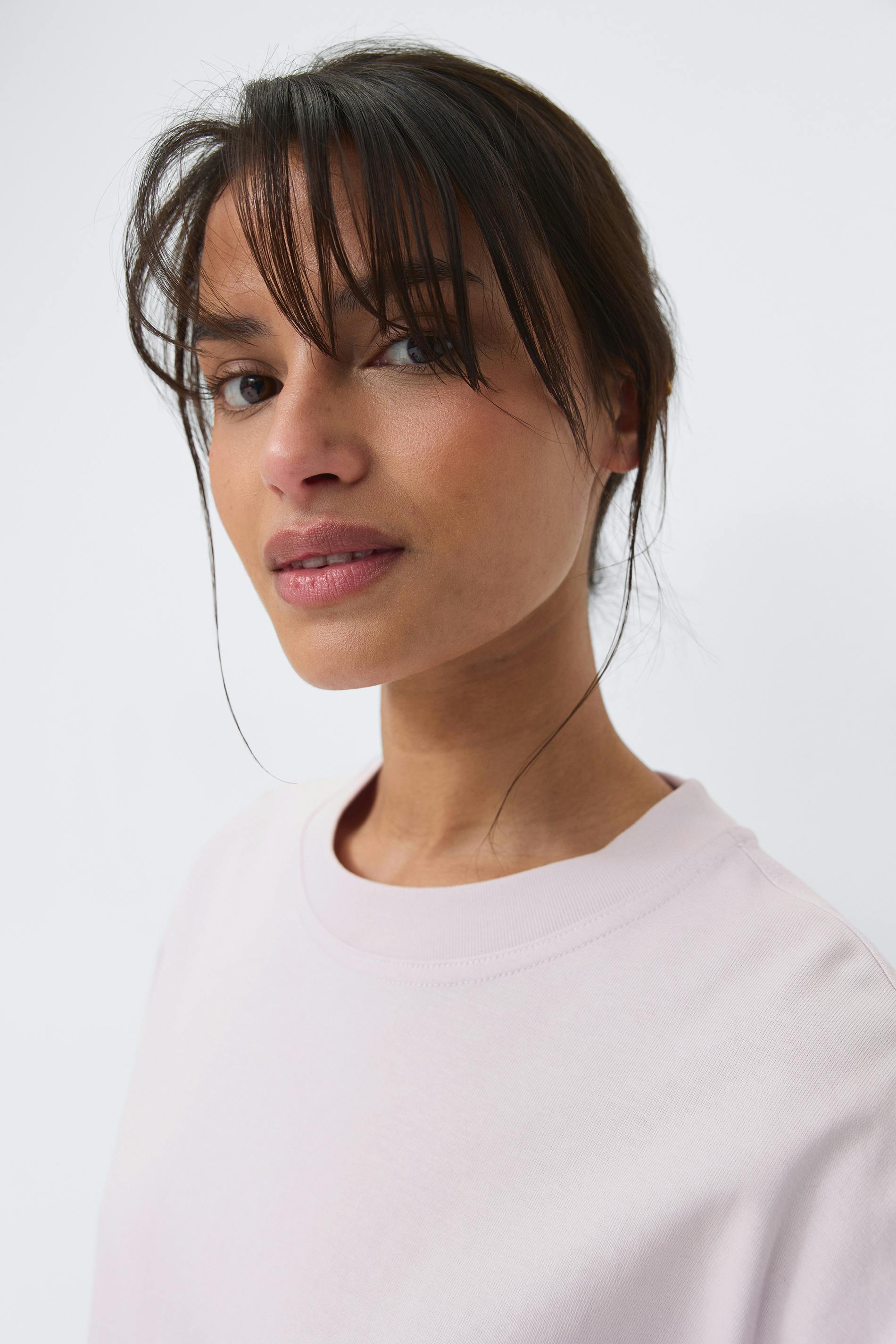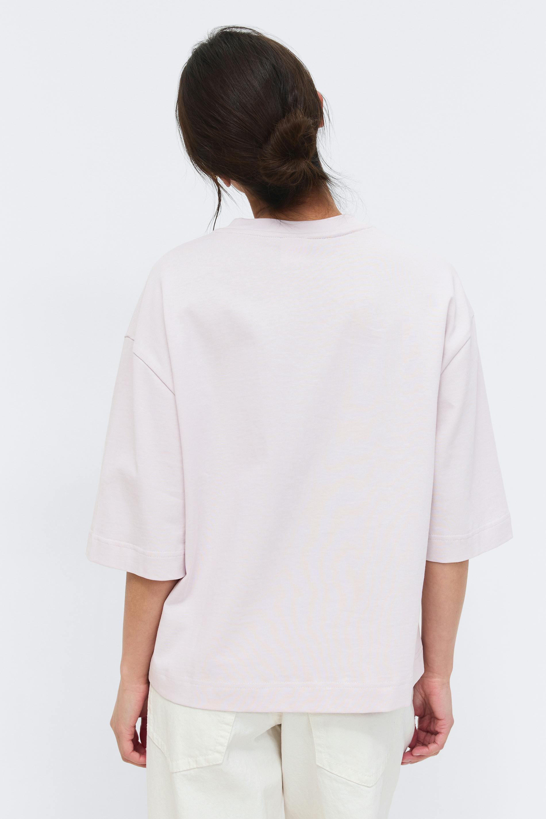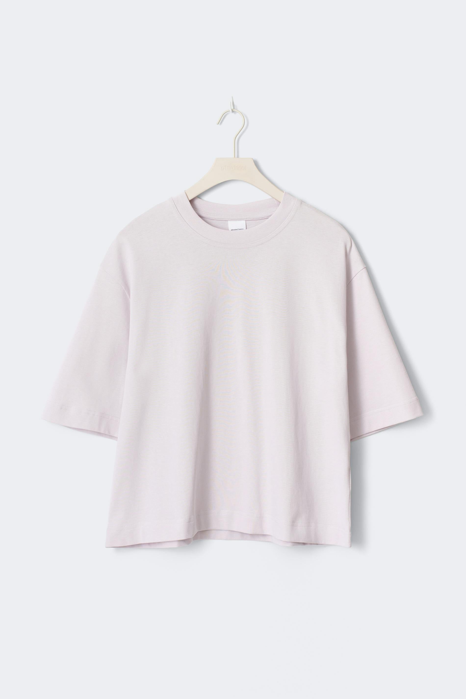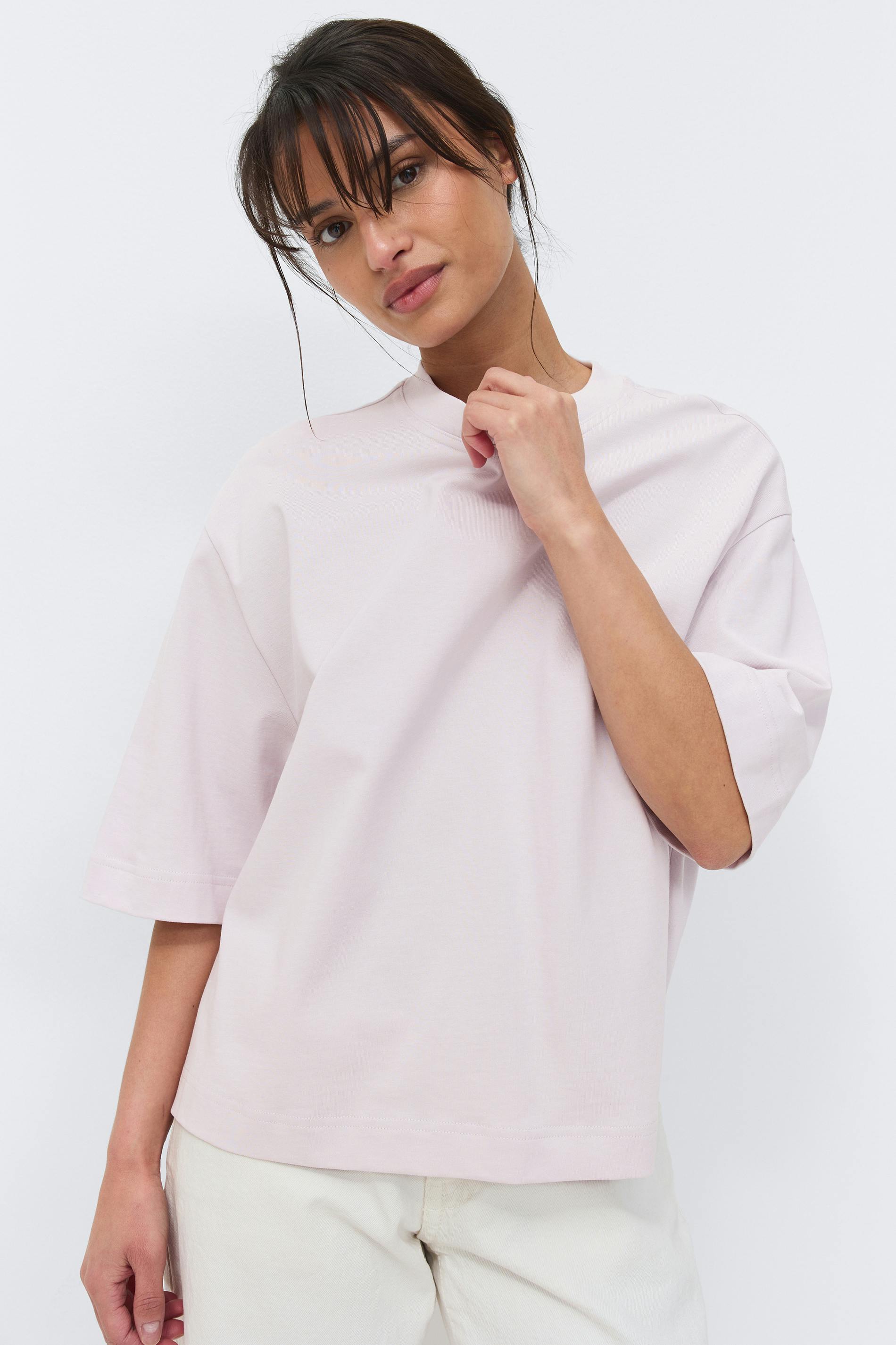 Boxig t-shirt i bomull med oversize fit. T-shirten är ljuslila och har croppad längd. Den har kort ärm och rund, ribbad halsringning.