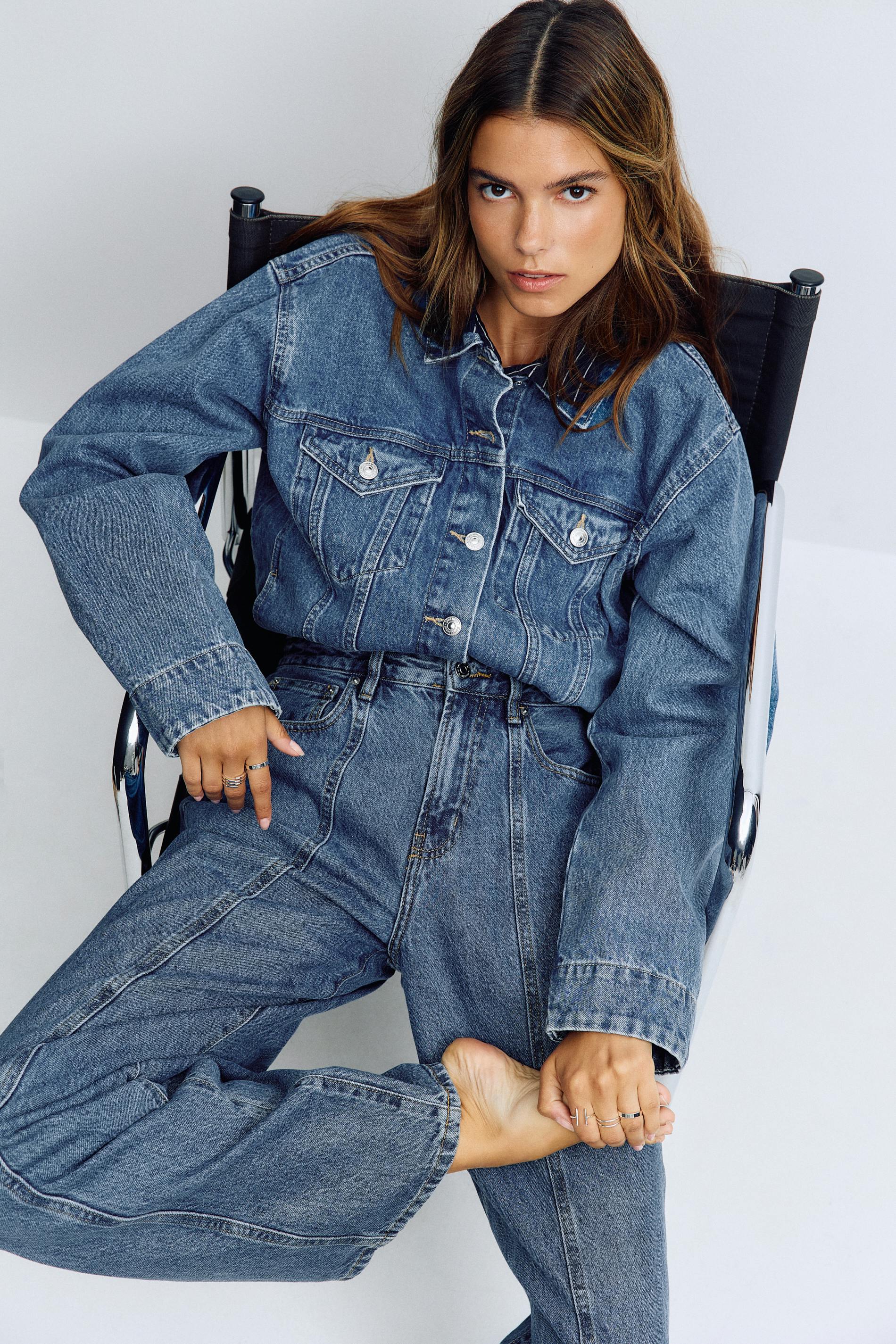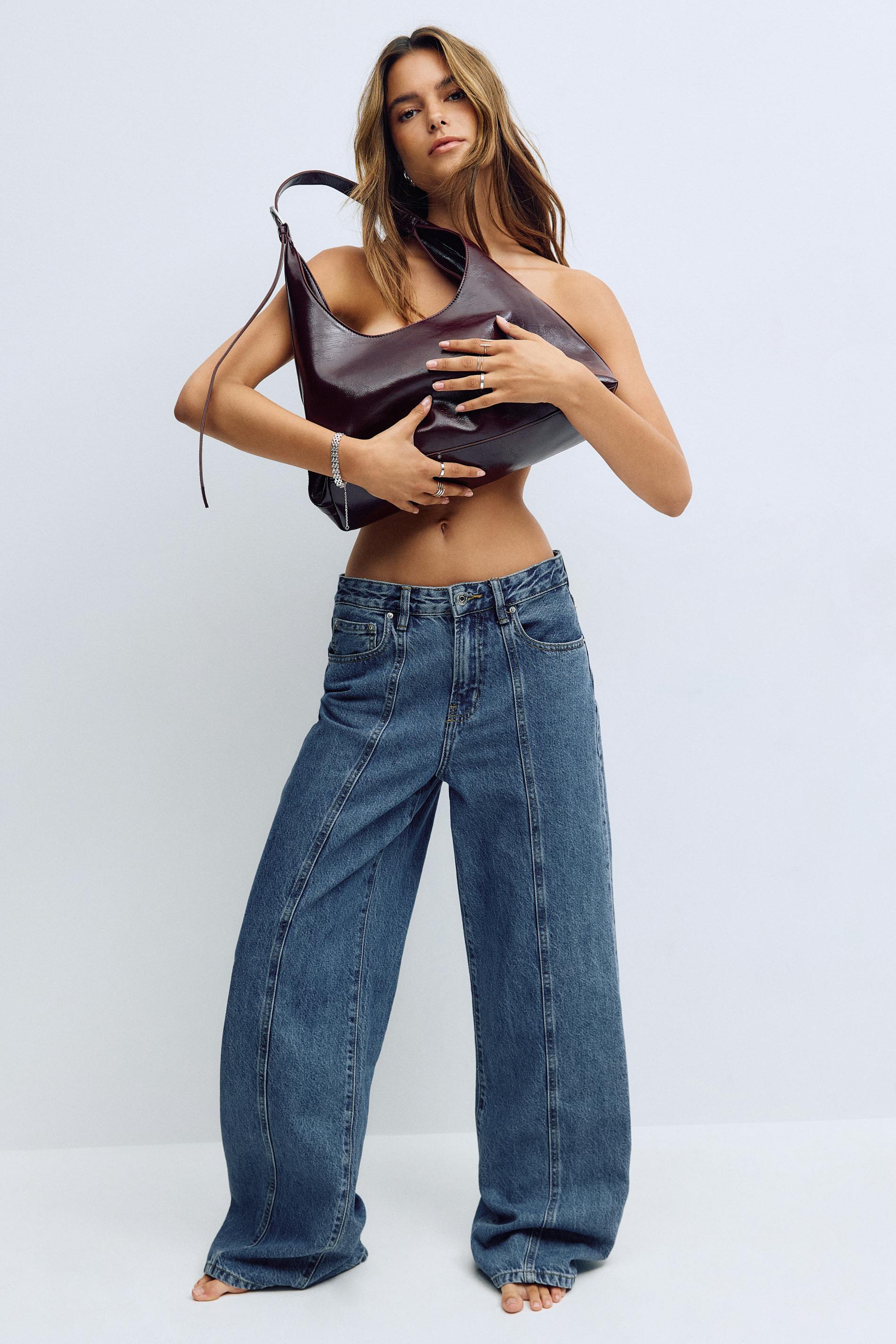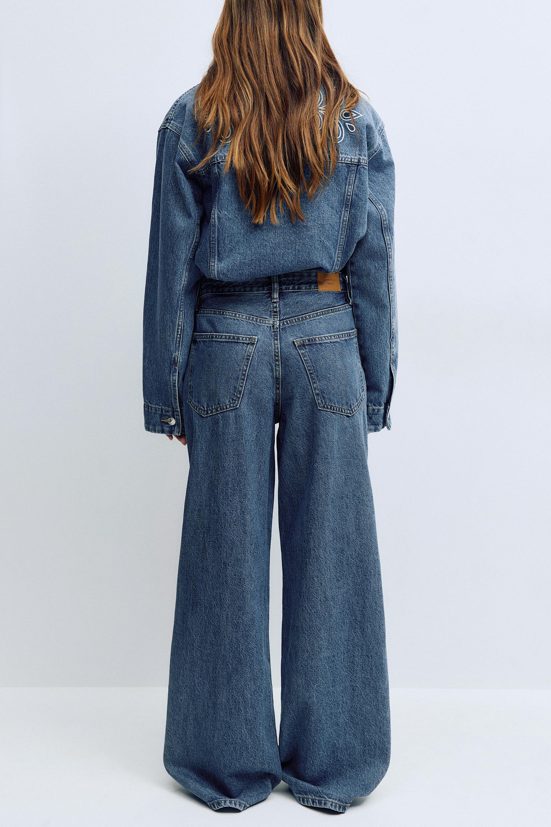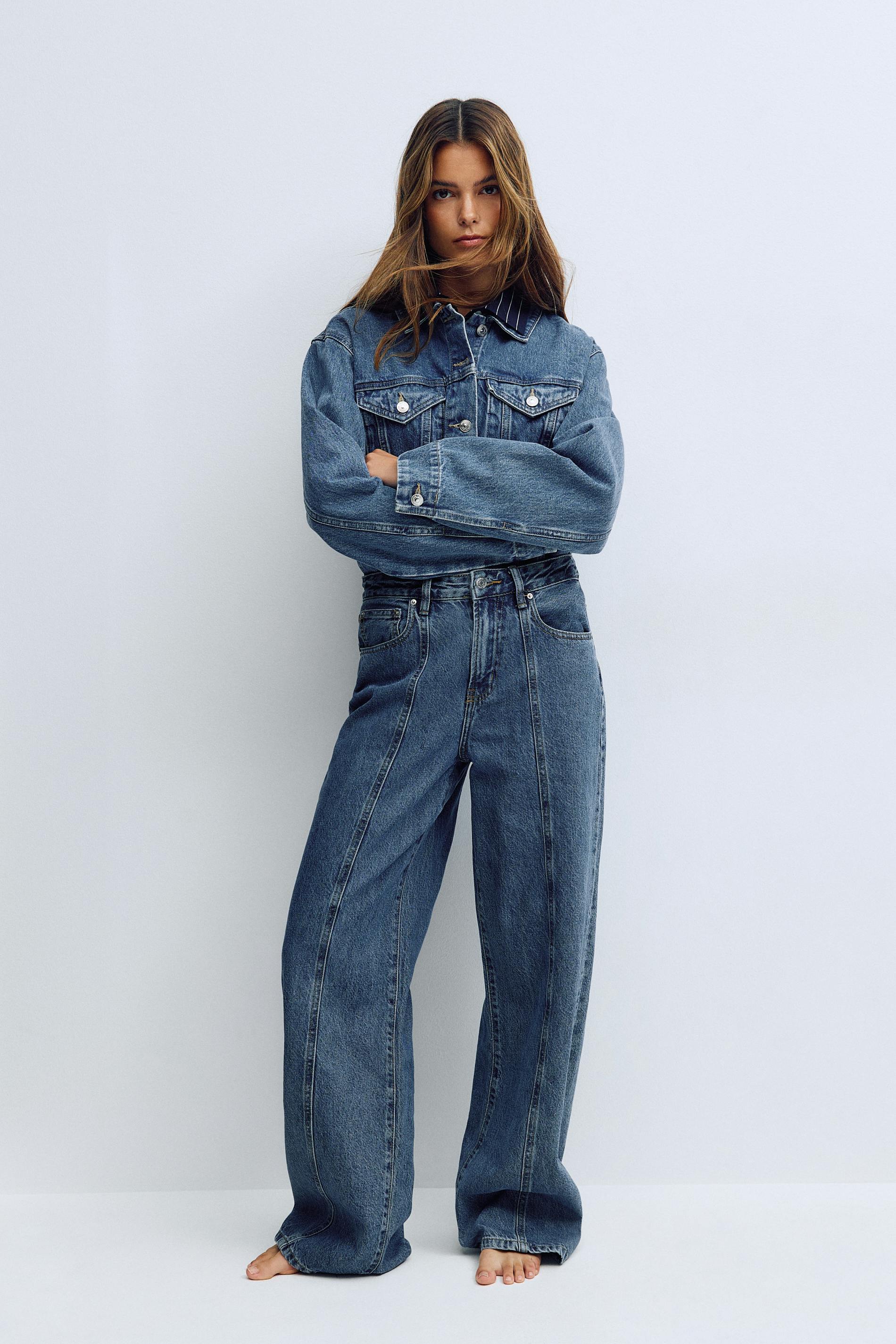 Wide jeans with seams at the front. The jeans are blue and have high waist in non-stretch denim. They have legs with full length, zip fly, belt loops and pockets at the front and back. Use our size guide to find your size.