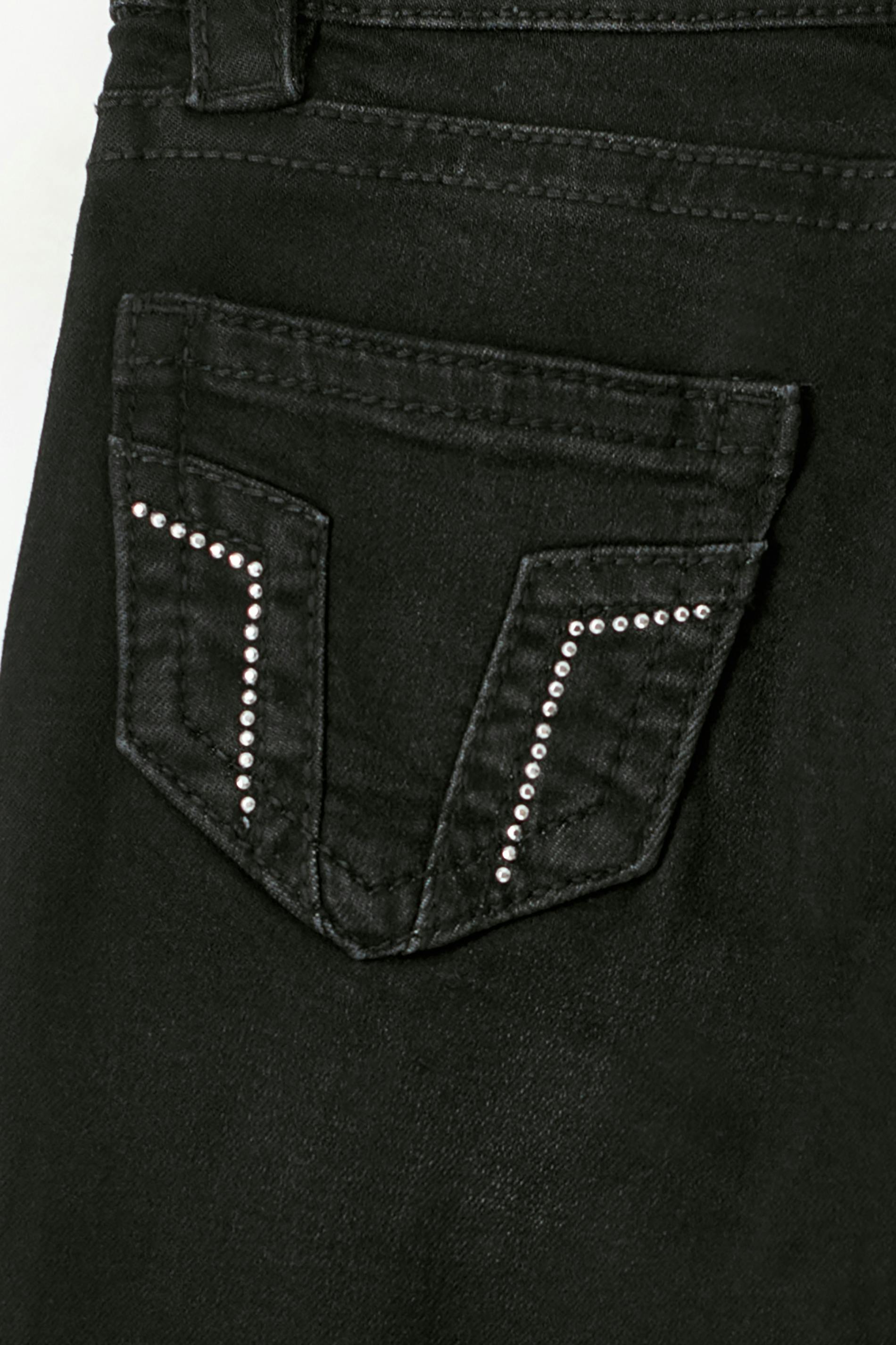 Flare jeans med en låg midja. Jeansen är svarta och har bakfickor med strass. De har en figurnära passform och en normal passform.