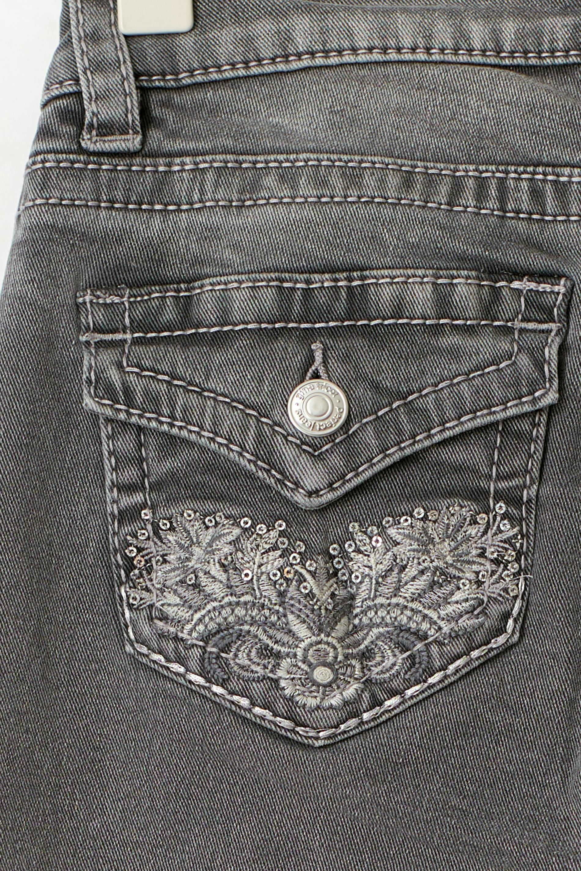 Tall flare jeans med låg midja. Jeansen är ljusgråa och har broderade bakfickor med paljetter. De är gjorda av denim med låg stretch och har utsvängda ben, figurnära passform och en normallängd. Passar för dig som är 175 cm eller längre.