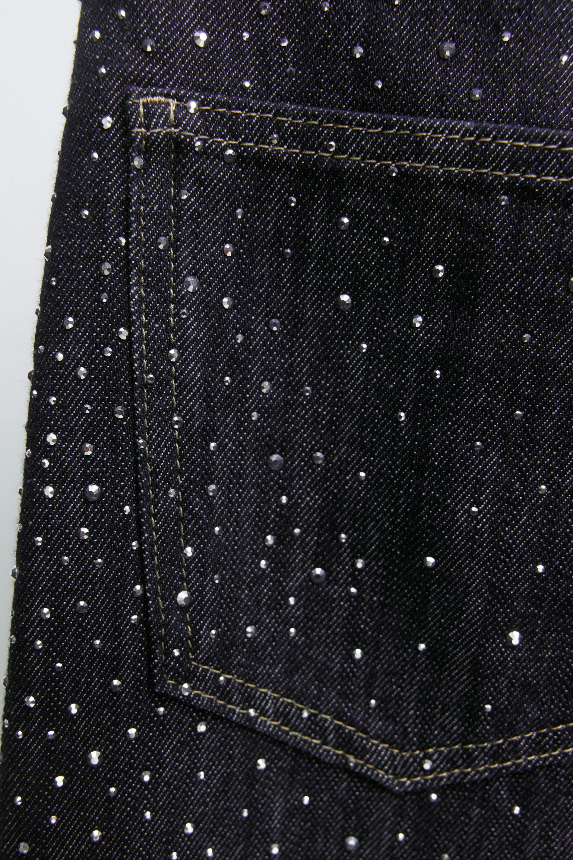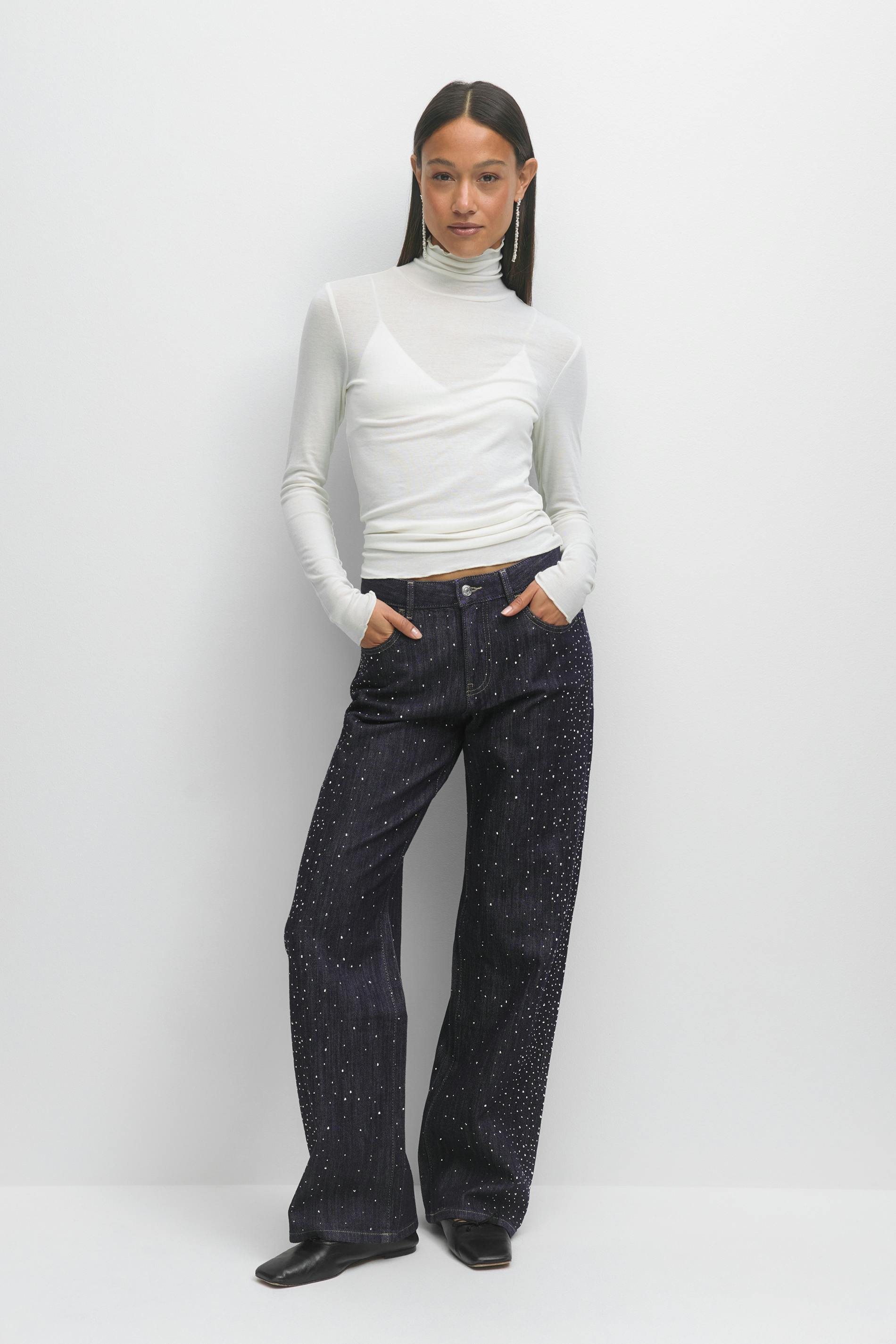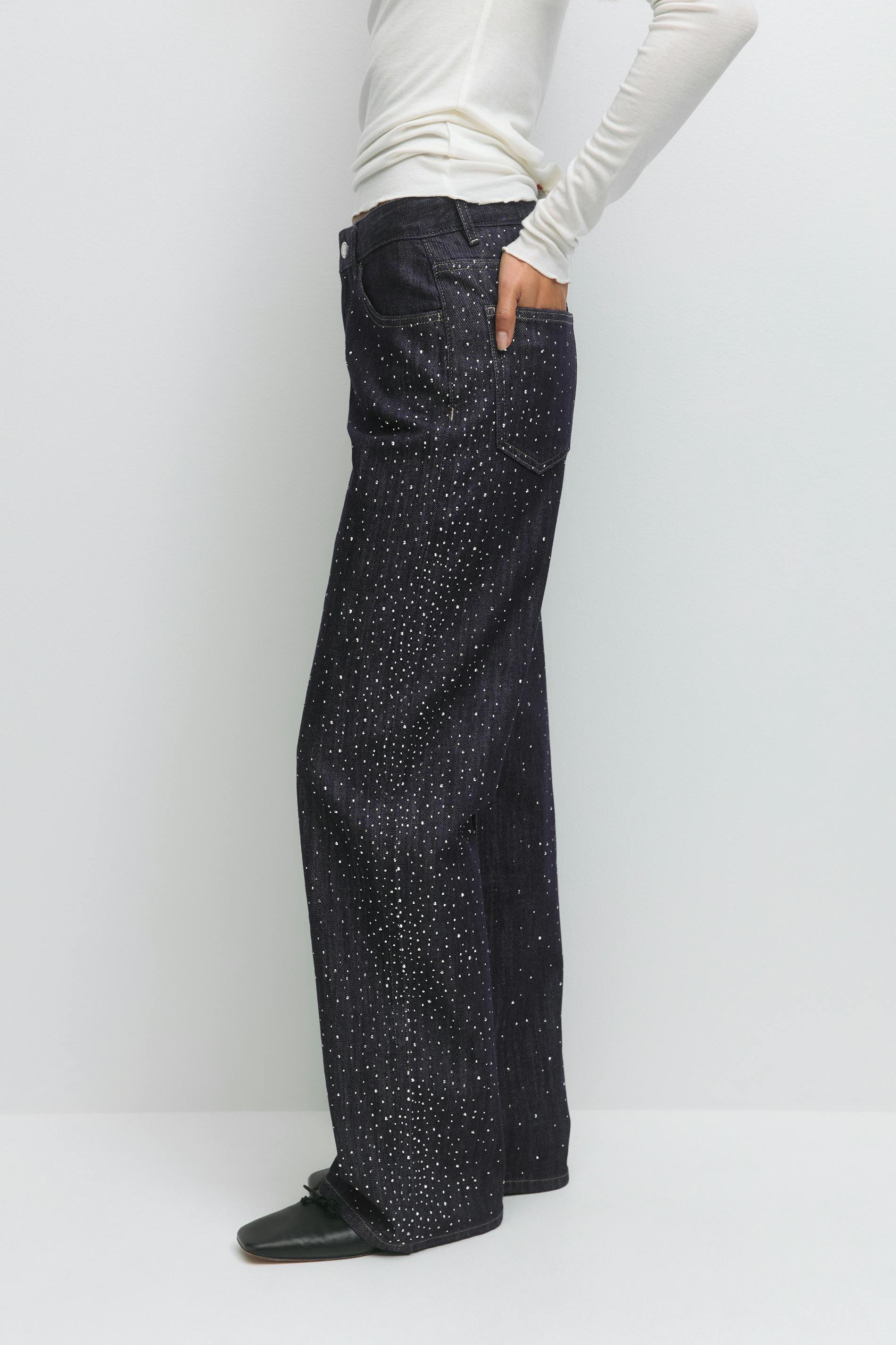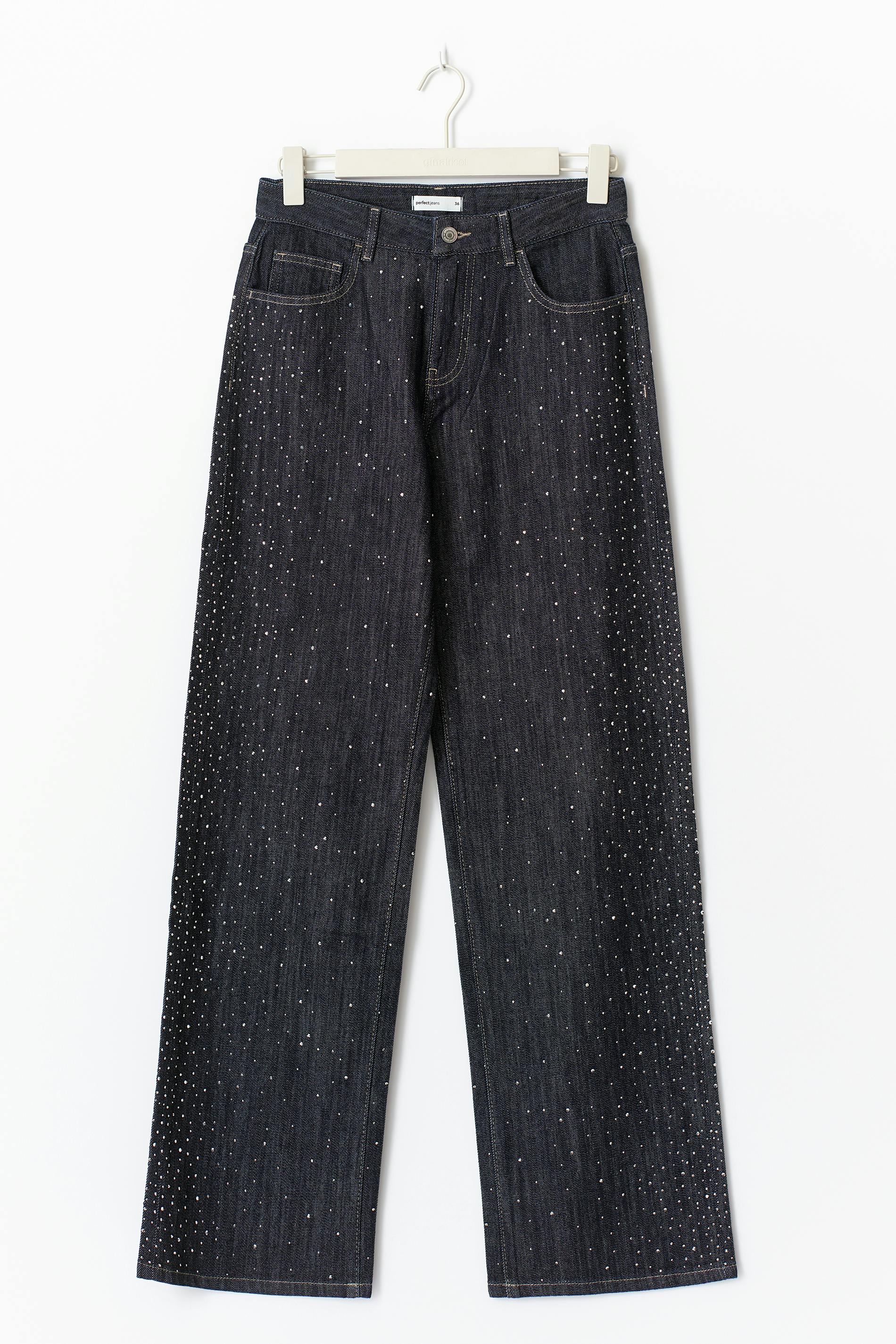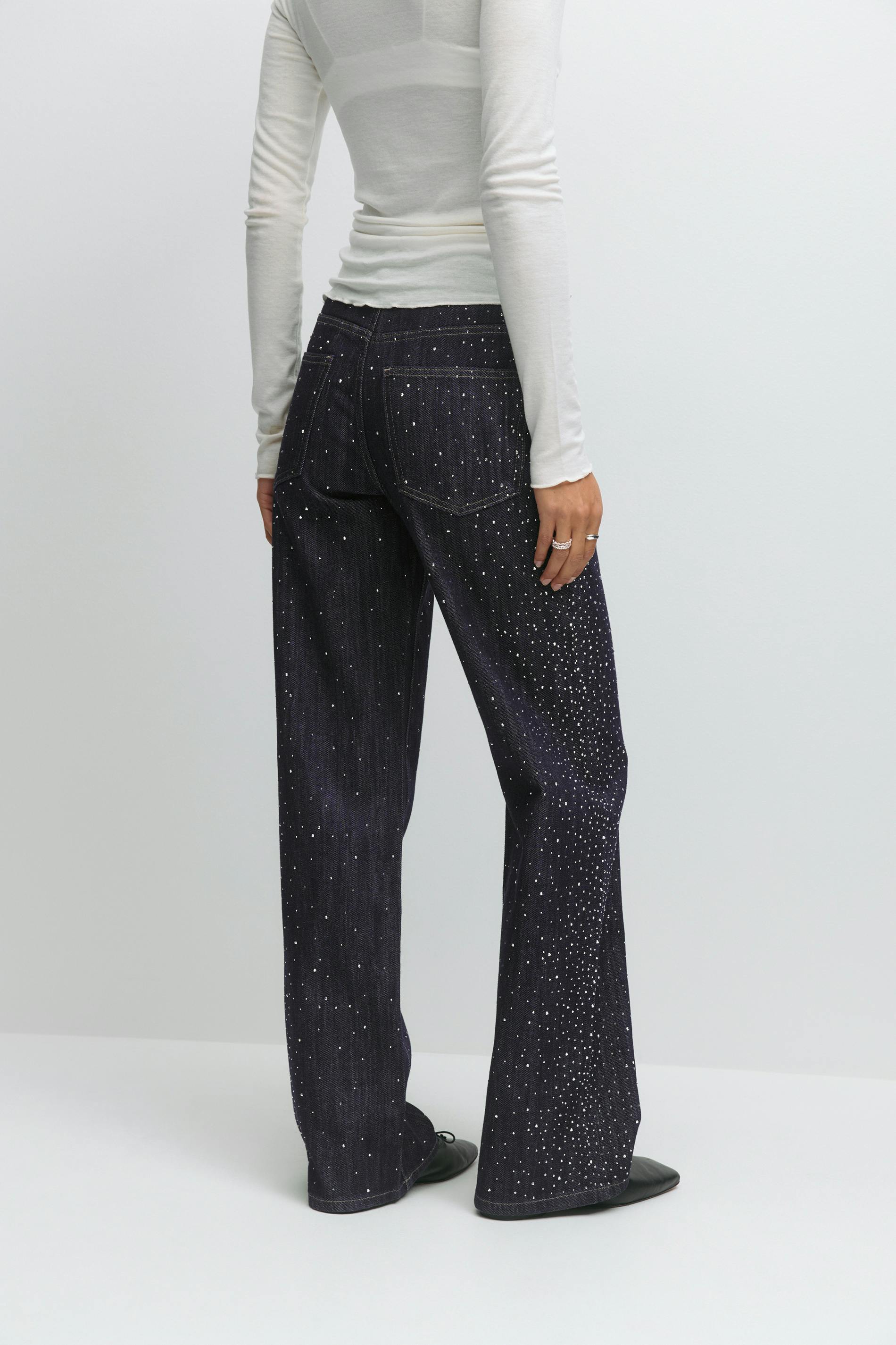 Strassprydda jeans med en normalhög midja i denim. Jeansen har en lös rak passform utan stretch. De har fickor fram och bak. Se gärna vår storleksguide för att hitta din storlek.