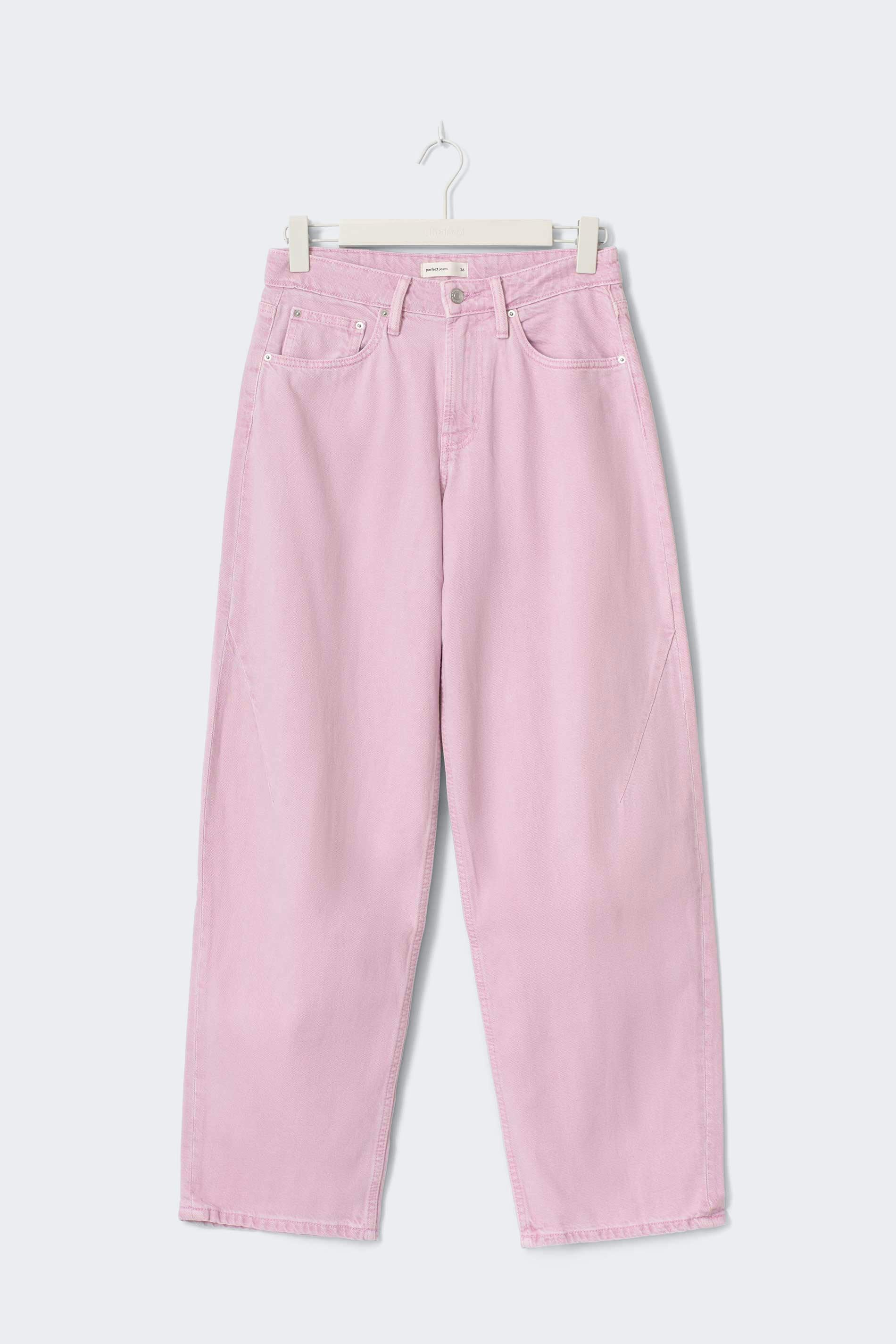 Tall baggy jeans med extra långa ben. Jeansen är rosa och har låg midja. De har oversize fit, dragkedjegylf, bälteshällor och fickor fram och bak. Passar för dig som är 175 cm eller längre. Utan stretch. Se gärna vår storleksguide för att hitta din storle