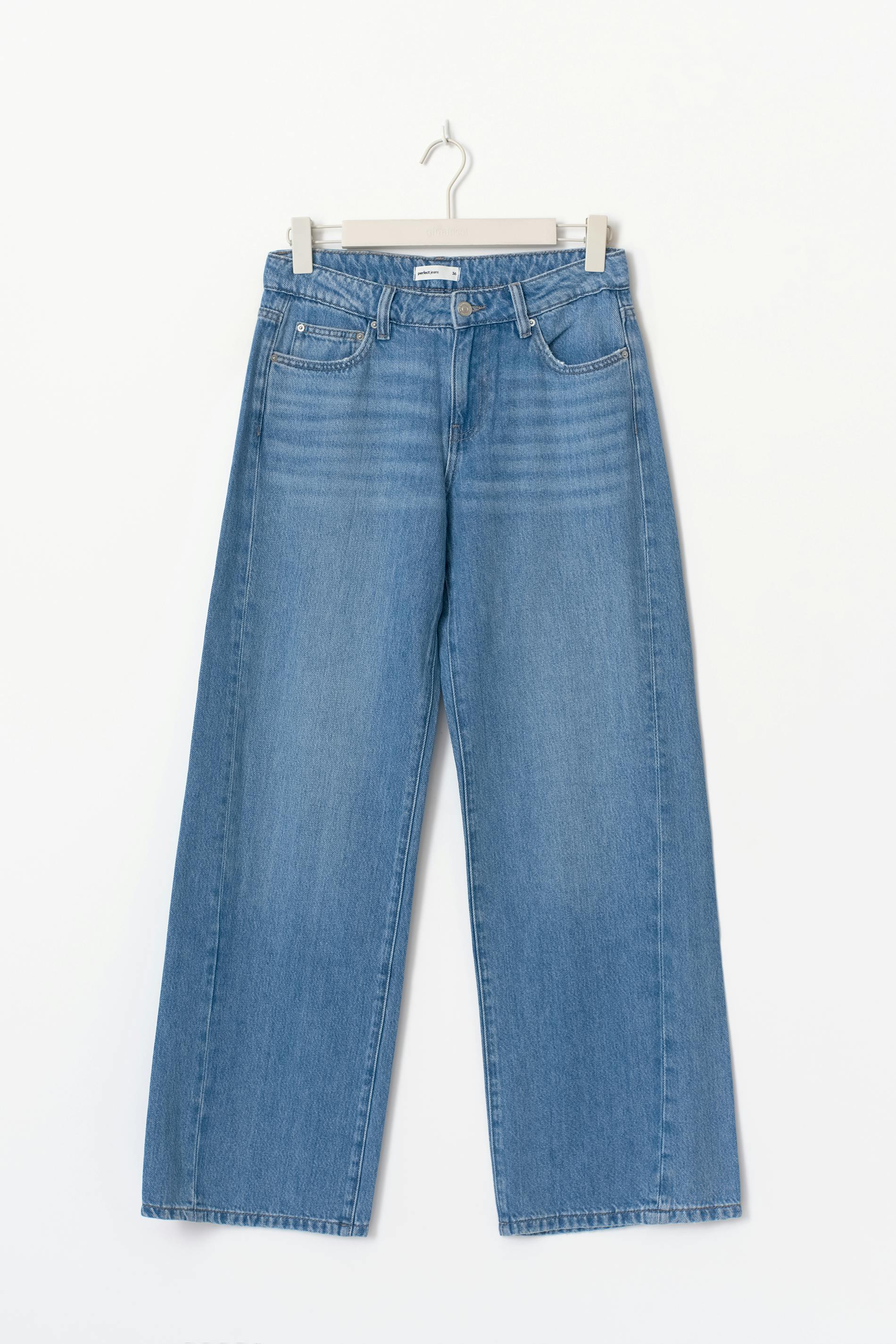 Tall vida jeans med låg midja. Jeansen är blåa och har vida ben med fullängd. De har normal passform, bälteshällor, dragkedjegylf och fickor fram och bak. Passar för dig som är 175 cm eller längre. Se gärna vår storleksguide för att hitta din storlek.