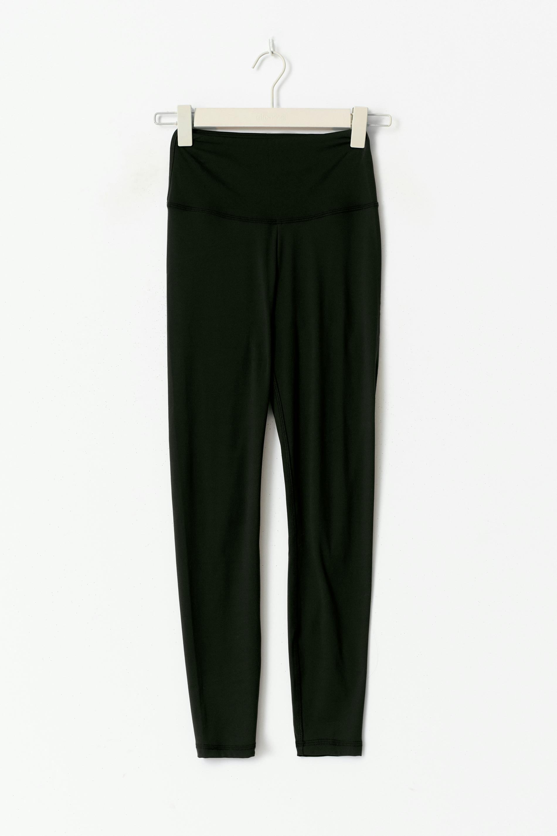 Yogatights med en hög midja. Leggingsen är svarta och har en rynkad söm baktill. De har stretchigt material och en figurnära passform.