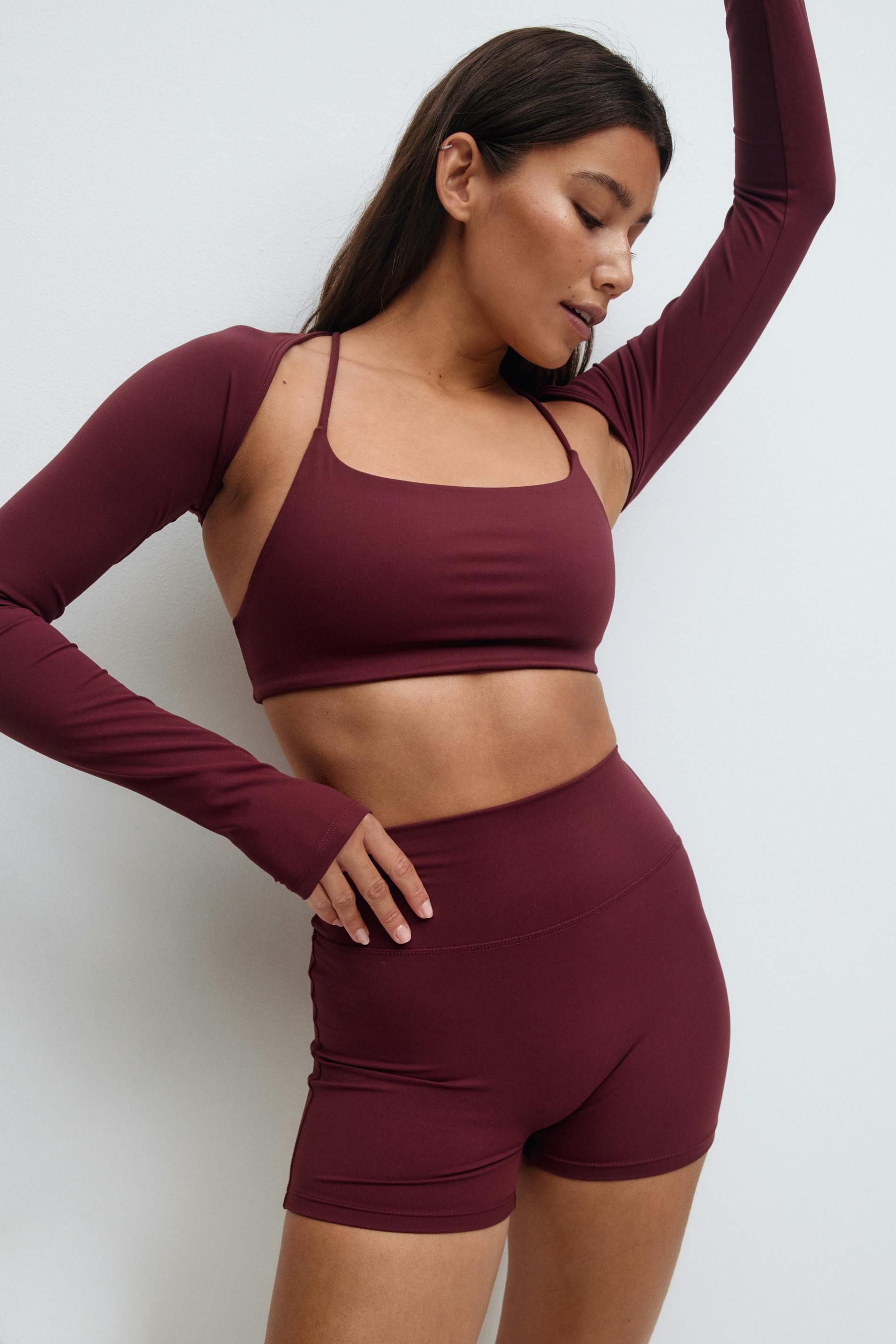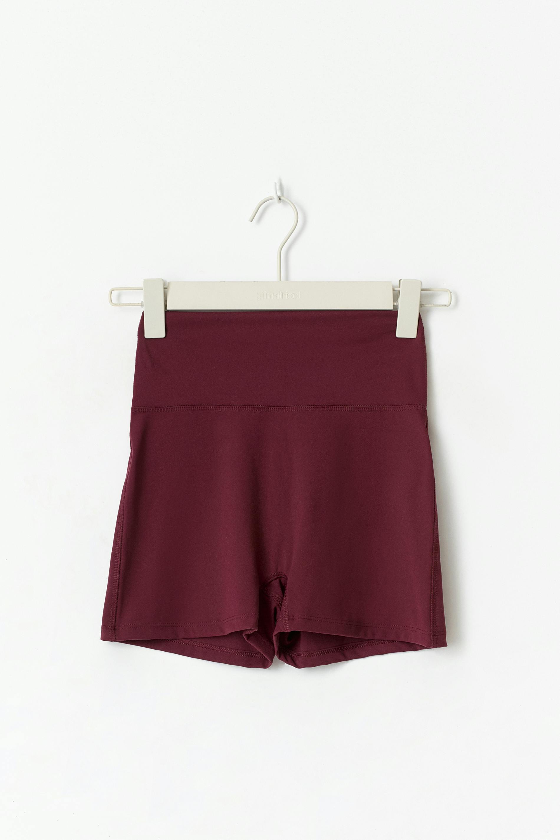 Korta yoga shorts med hög midja. Shortsen är vinröda och har stretchig kvalitet med stretchig figurnära passform. Fodrade.