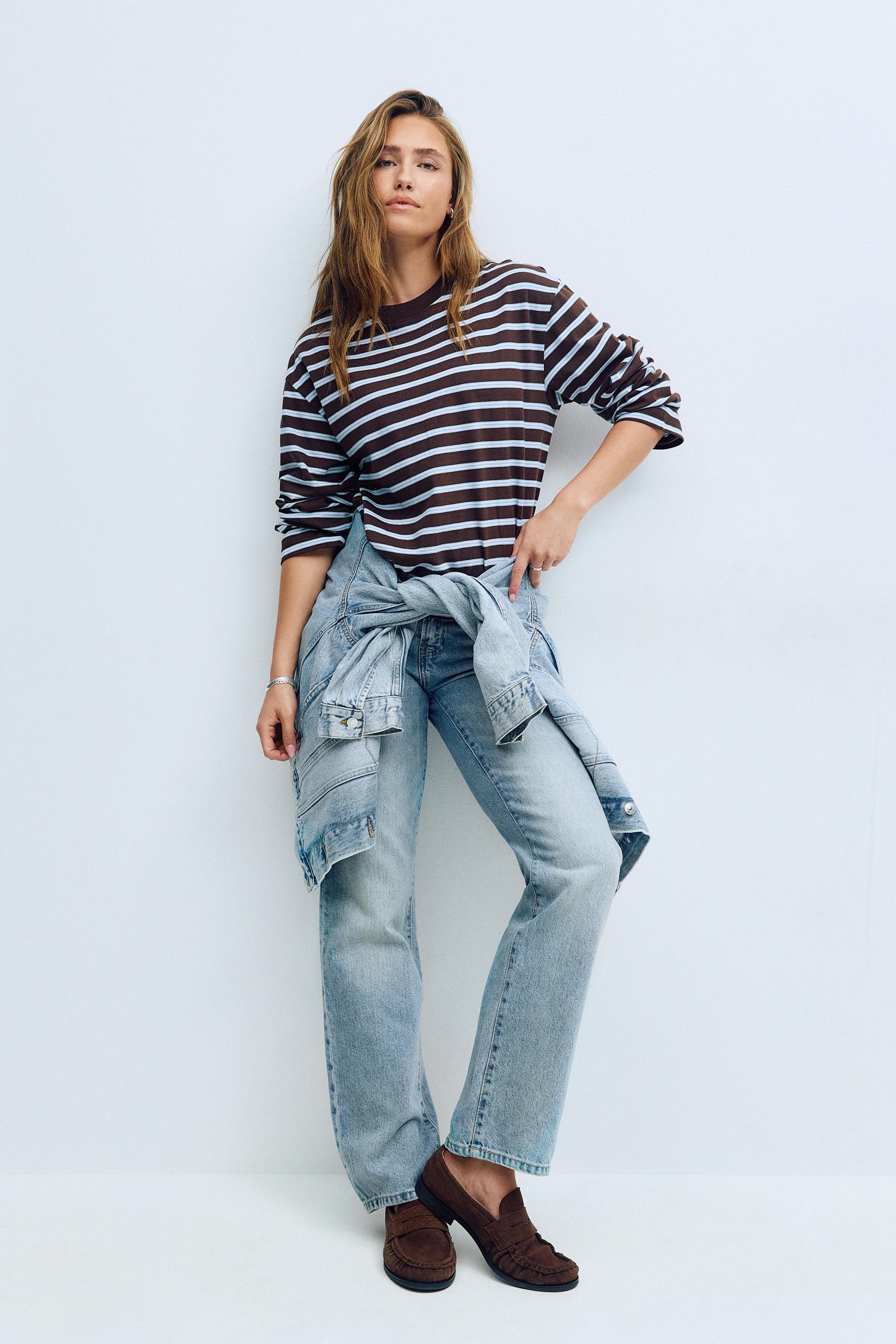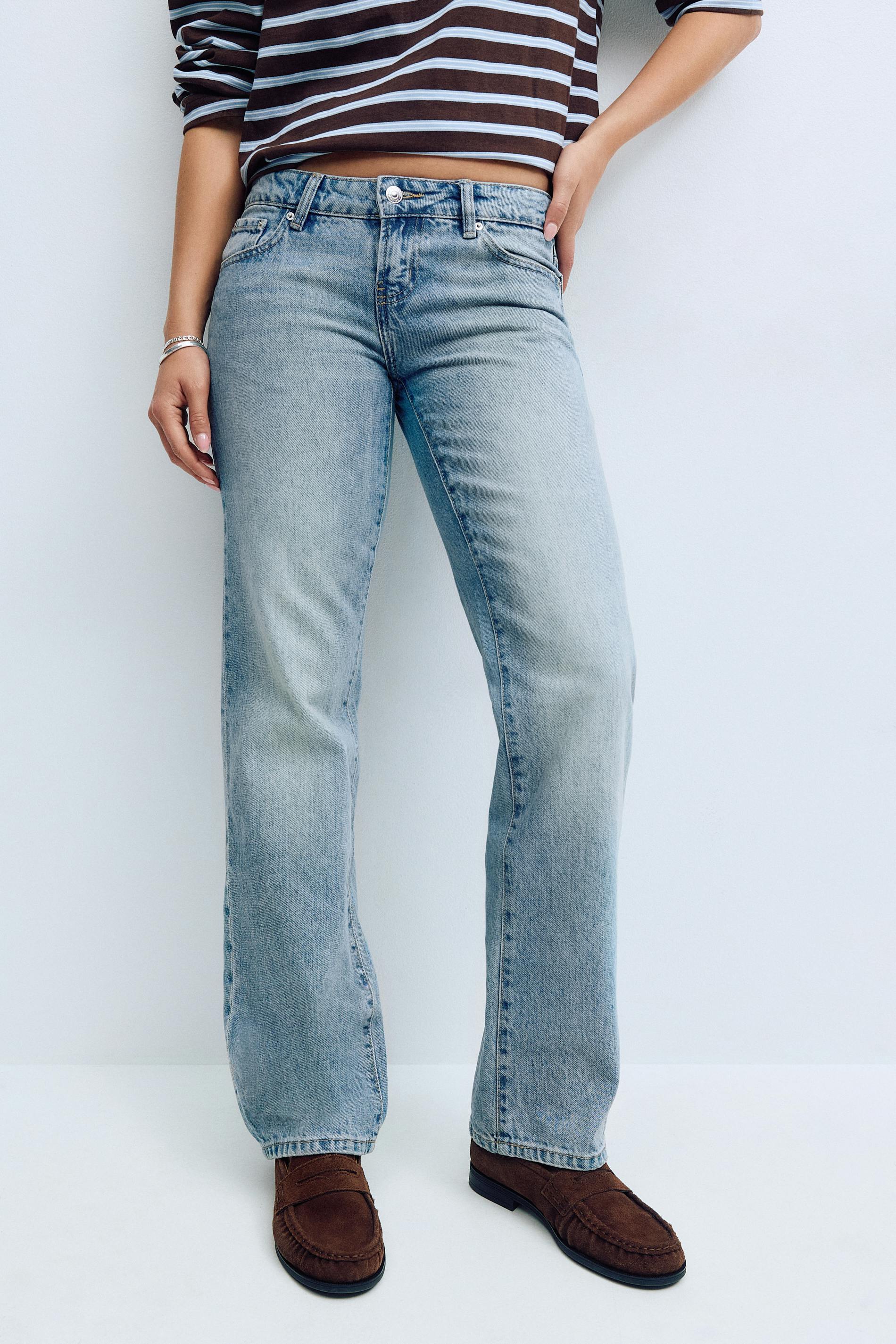 Straight jeans med låg midja i denim utan stretch. Jeansen är blåa och har raka ben med normallängd. De har dragkedjegylf och fickor fram och bak. Se gärna vår storleksguide för att hitta din storlek.