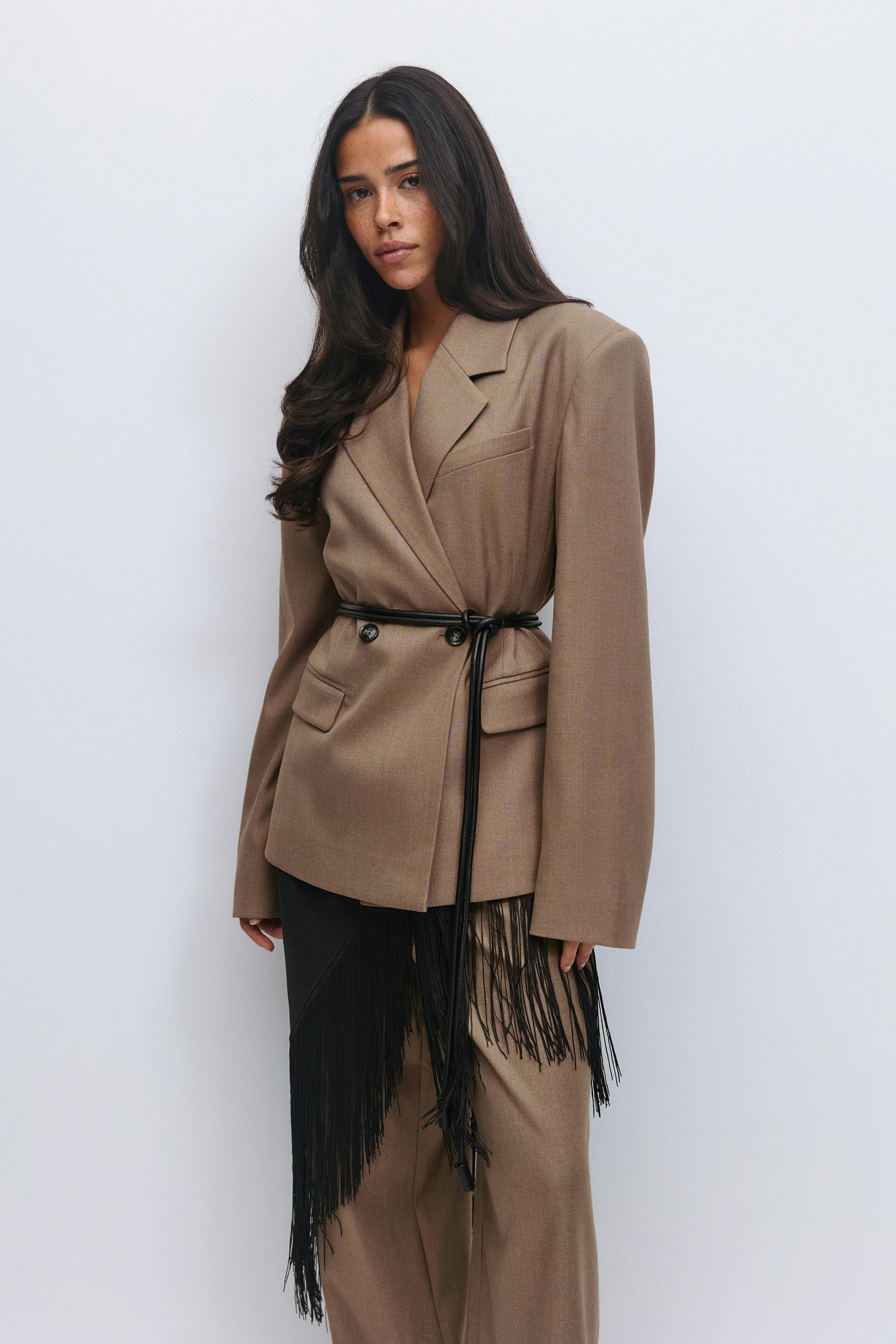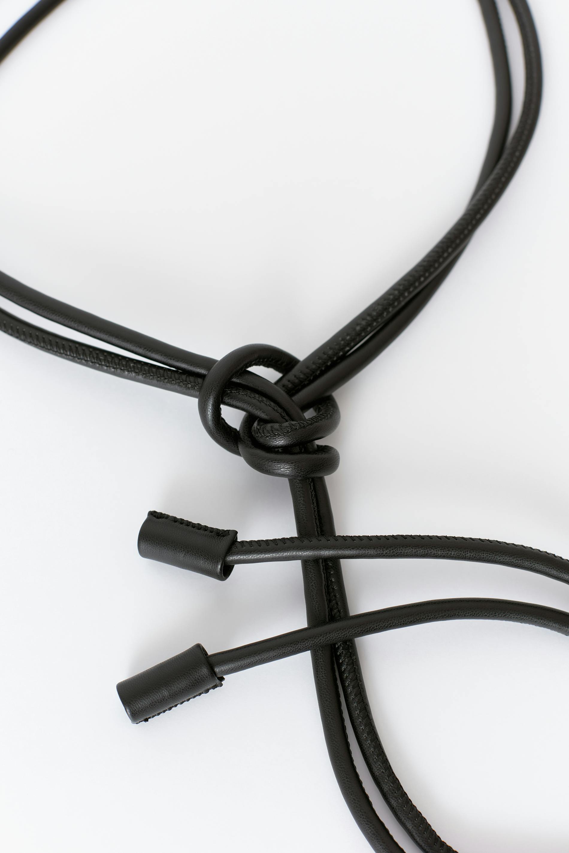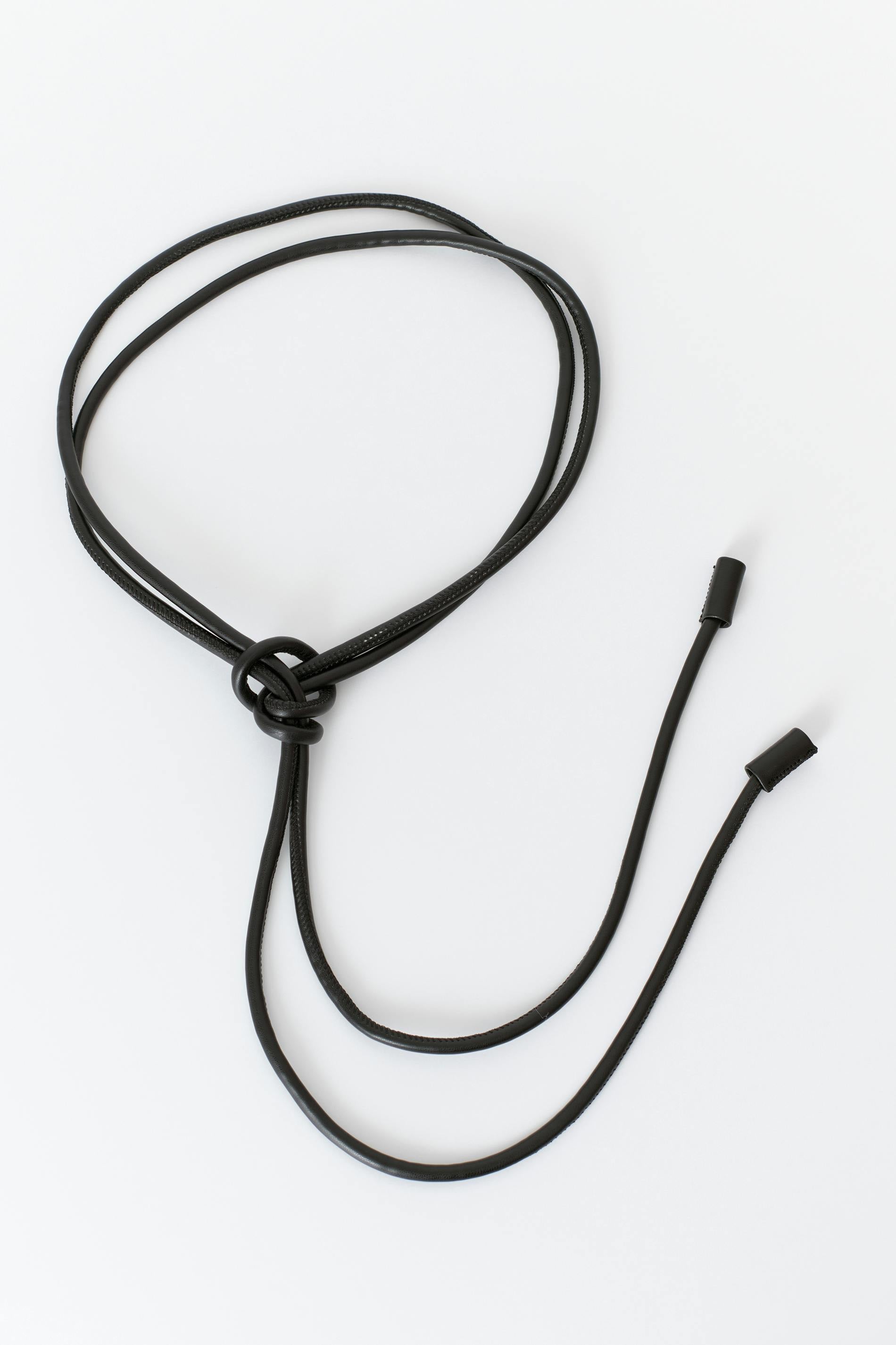 Tunt knytbälte i skinnimitation. Skärpet är svart.