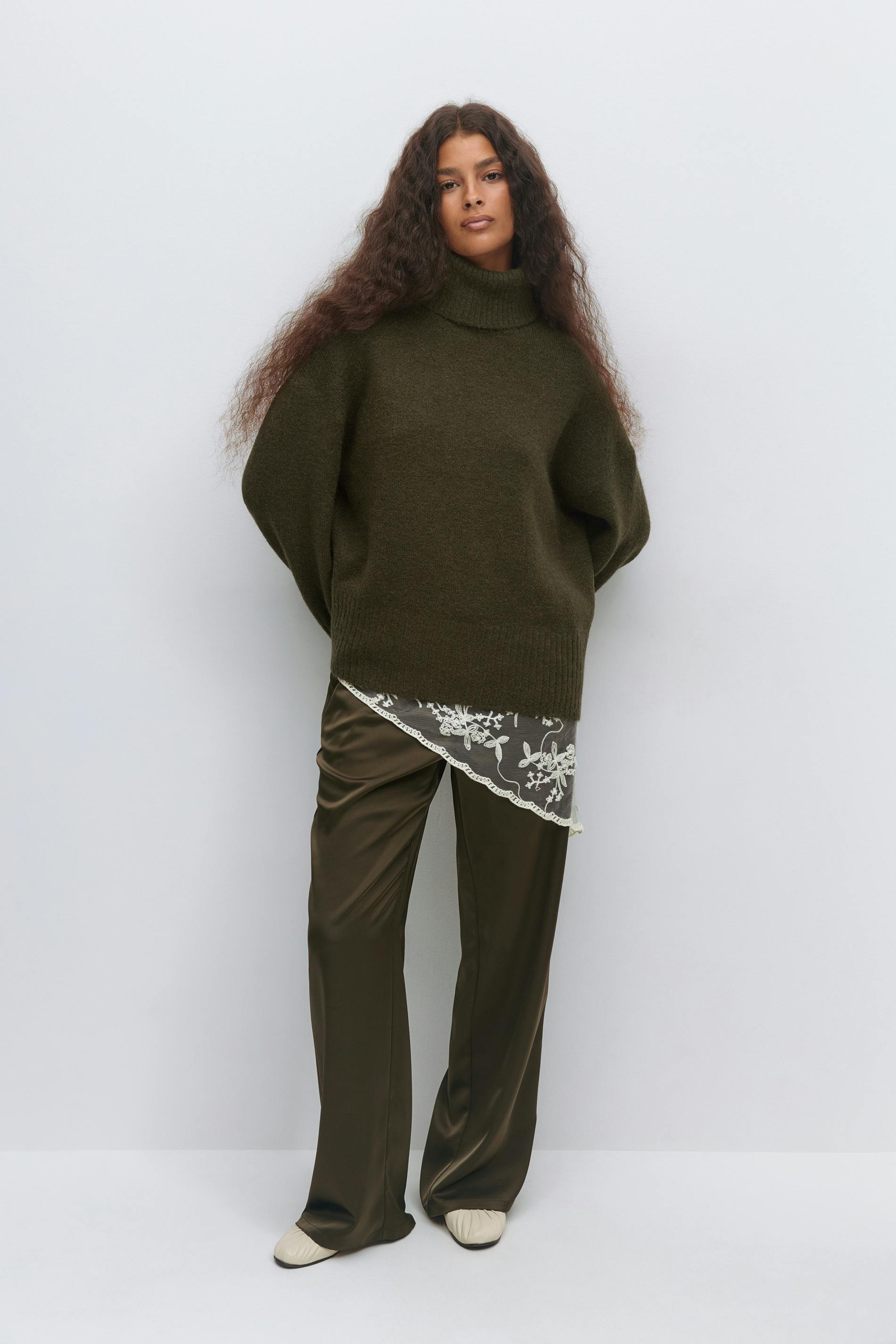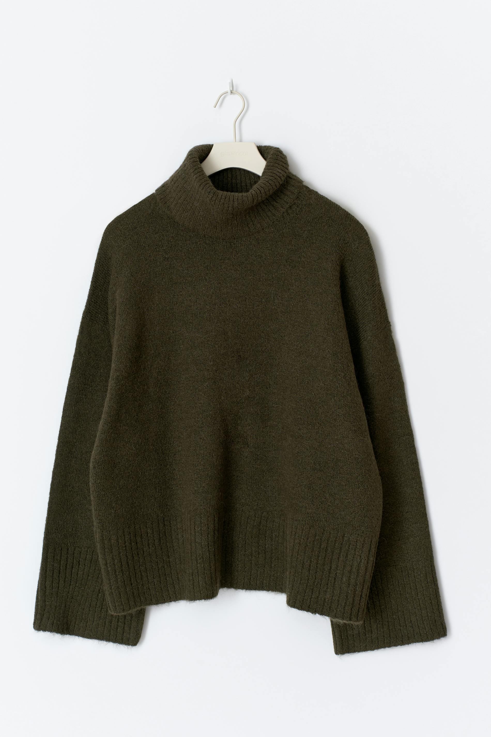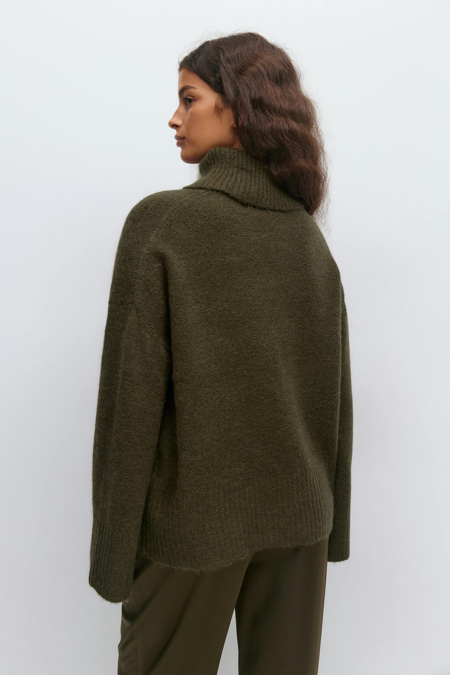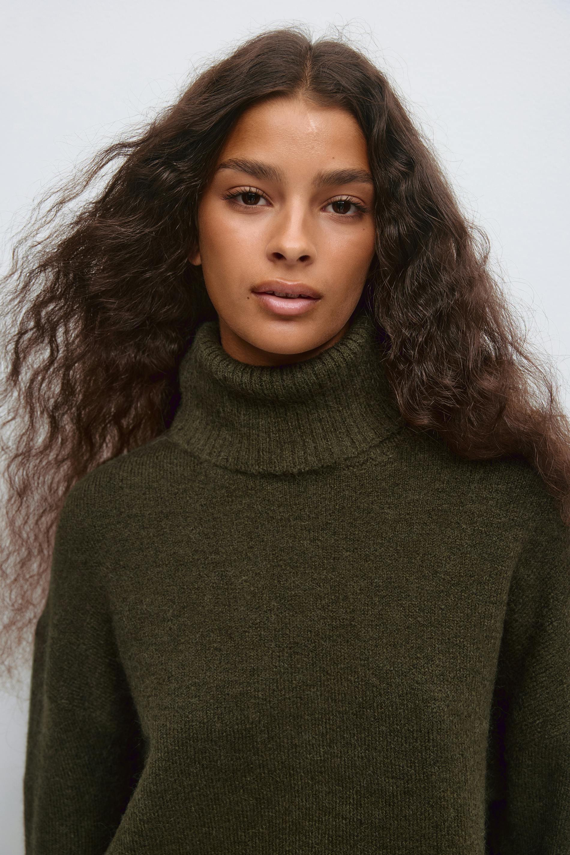 Stickad polotröja med oversize fit. Tröjan är blå och har ribbad polokrage. Den har långa ärmar och ribbstickning vid ärmslut och i nederkant.
