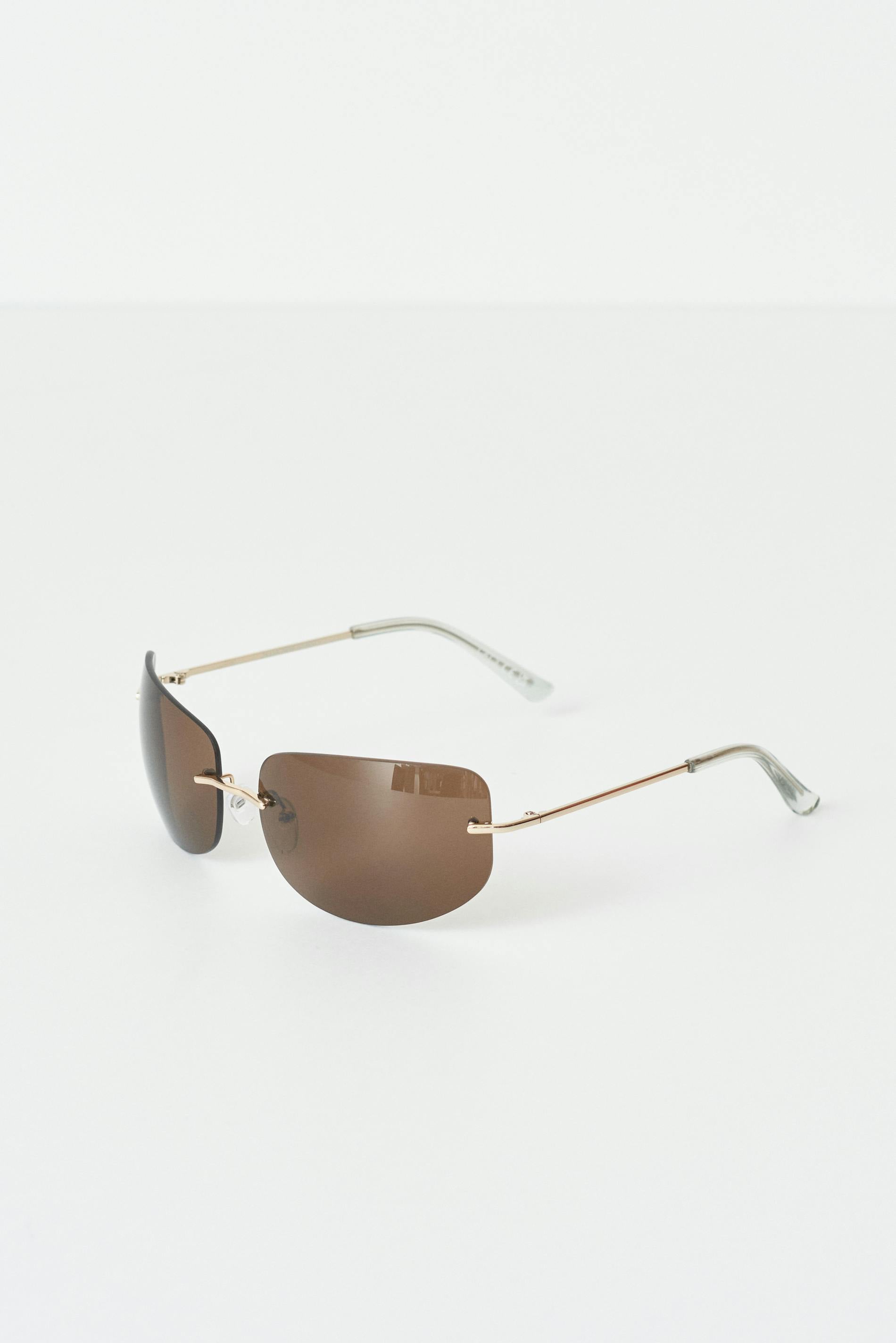 Solglasögon med smala metallskalmar. Solglasögonen är bruna och har ett UV400-skydd. De har ett tonat glas.