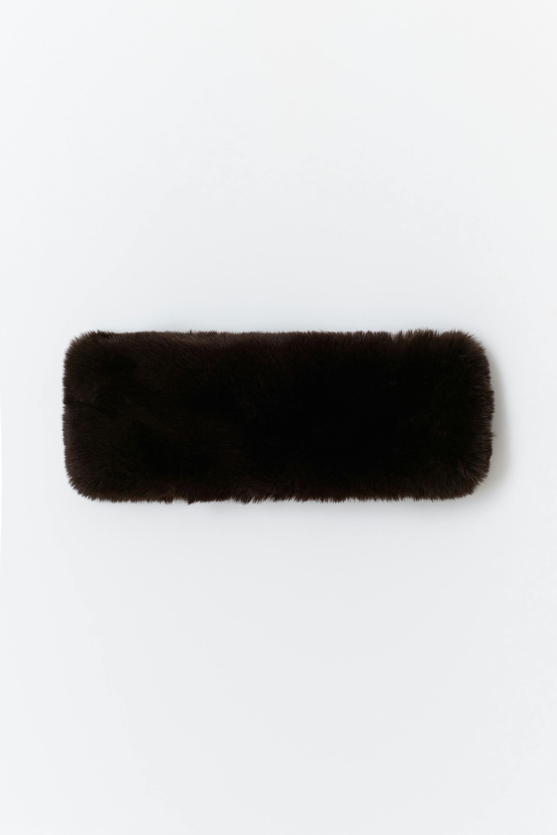 Brett pannband i fuskpäls med fluffig kvalitet. Accessoaren är brun.