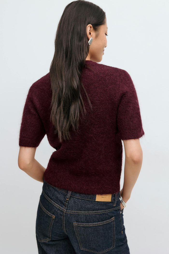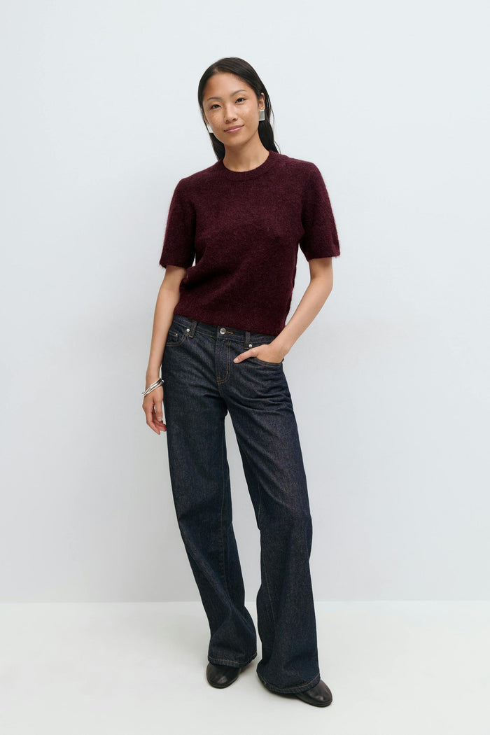 Short-sleeved knitted sweater with round neckline. The sweat is mint green and has soft quality. It has an oversize fit and rib knit at sleeve ends and at the bottom.