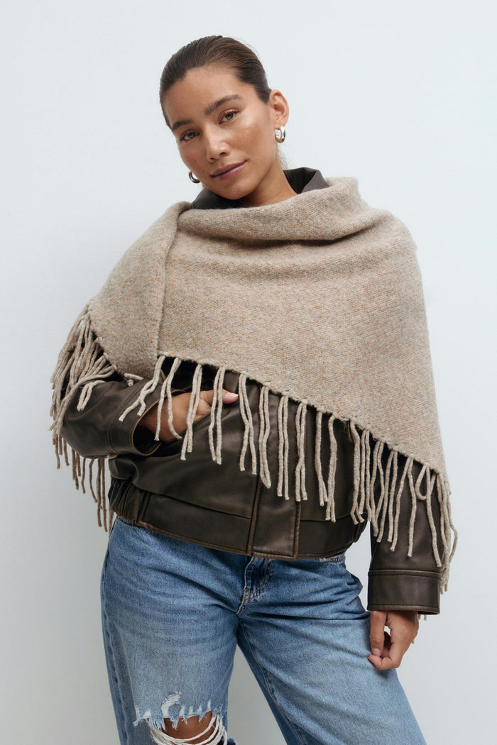Additional Description: Quality:100% Polyester recykled Design: chunky scarf with 20cm fringe edge