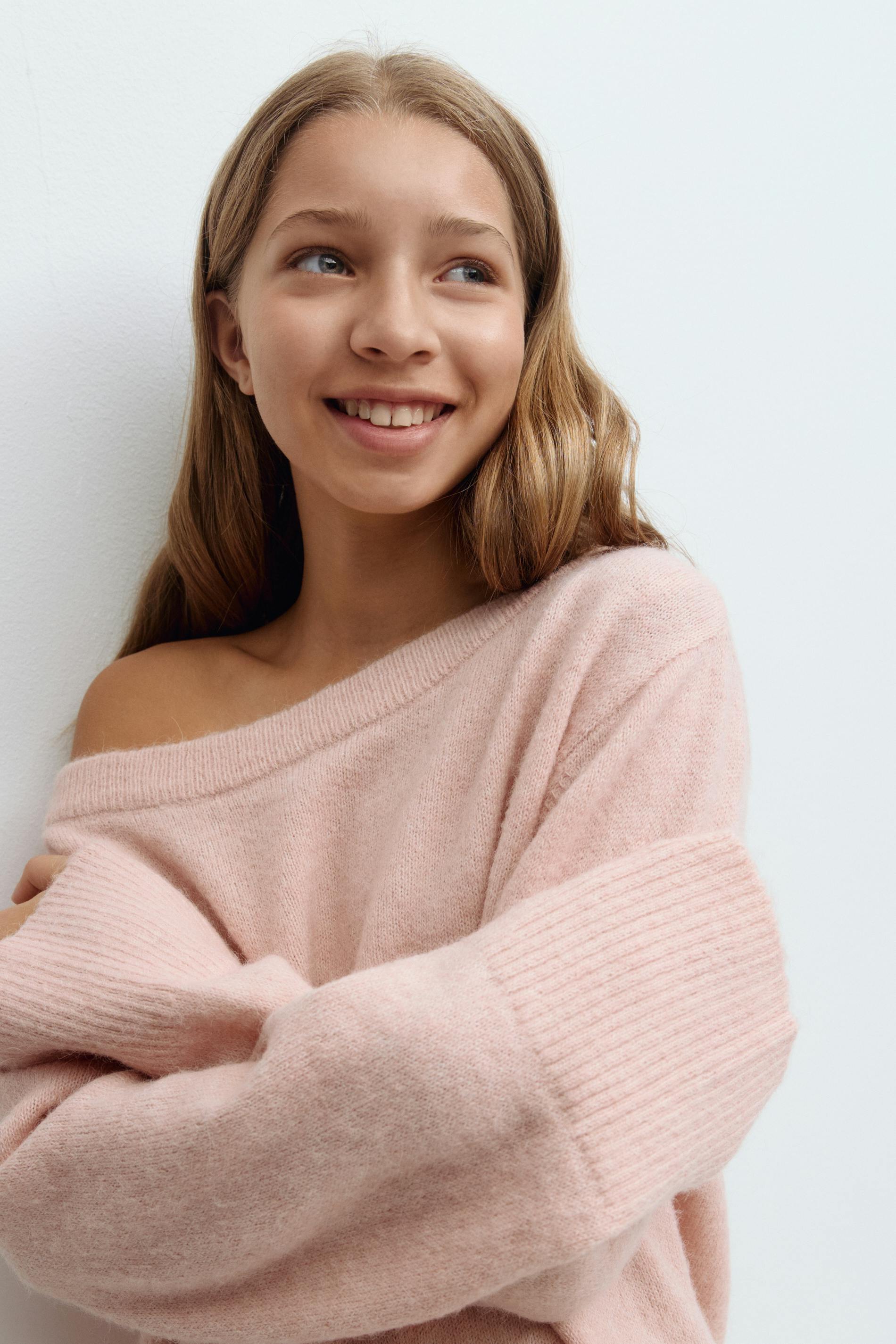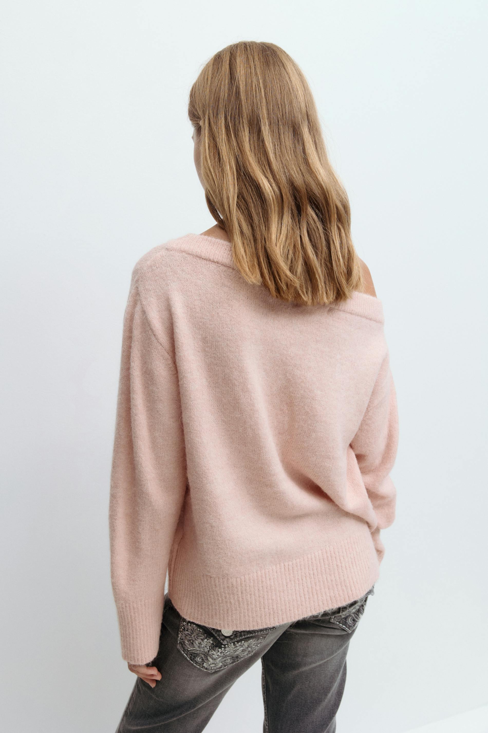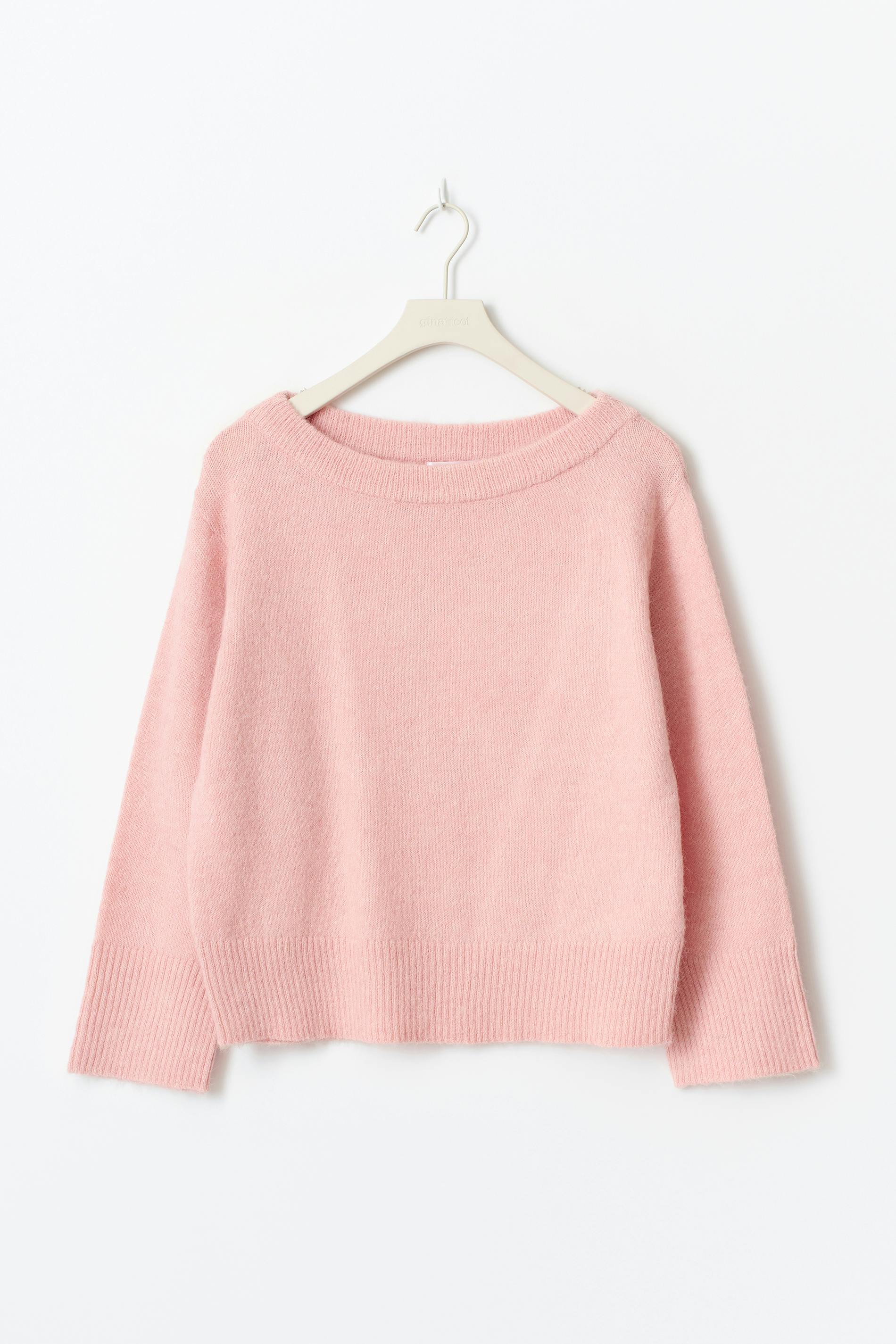 Stickad tröja med oversize fit. Tröjan är rosa och har rund halsringning. Den har långa ärmar, ribbad nederkant och normallängd.