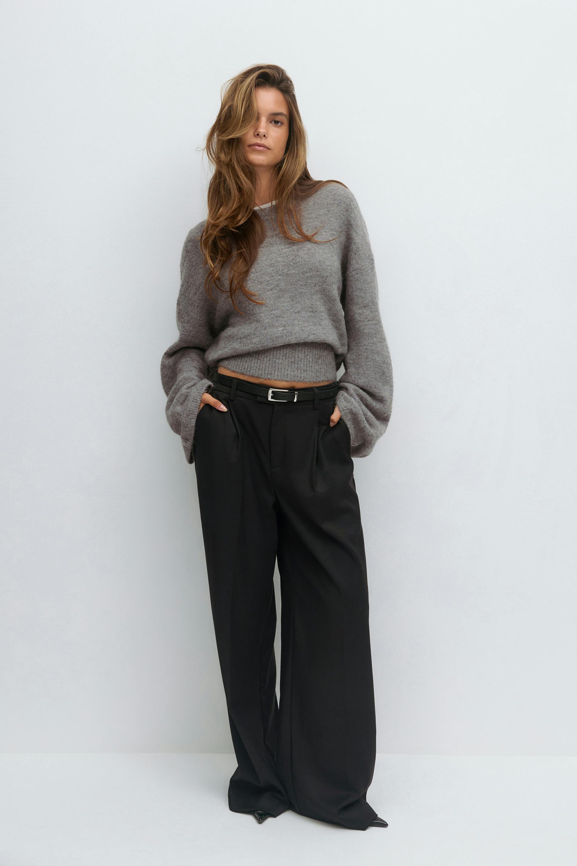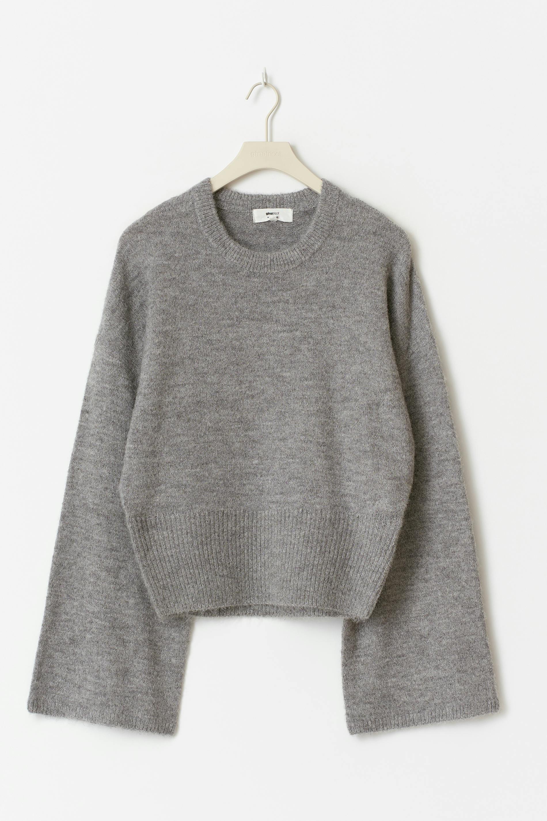 Stickad tröja i ullblandning med rund halsringning. Tröjan är grå och har normal passform. Den har lång ärm och ribbstickning vid ärmslut och i nederkant.