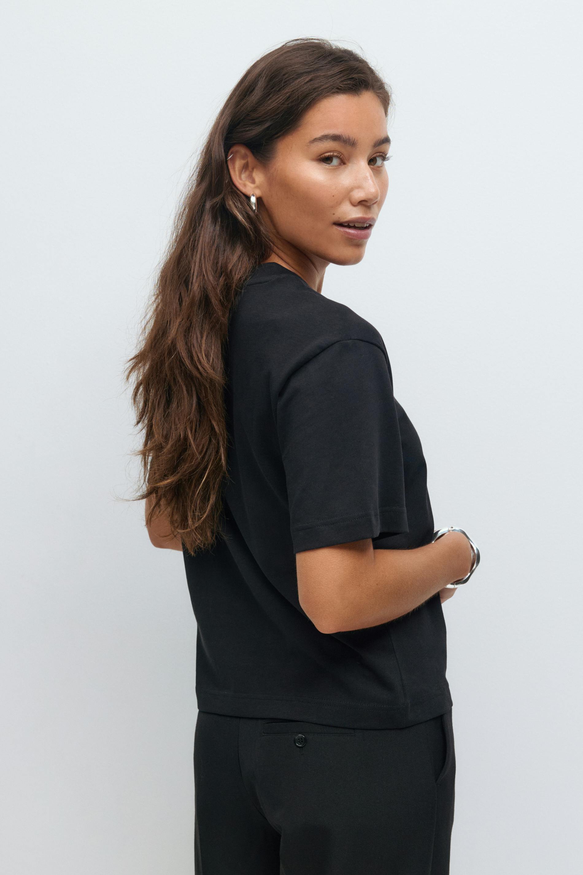Kortärmad t-shirt med rund halsringning. T-shirten är svart och har tjock bomullskvalitet.