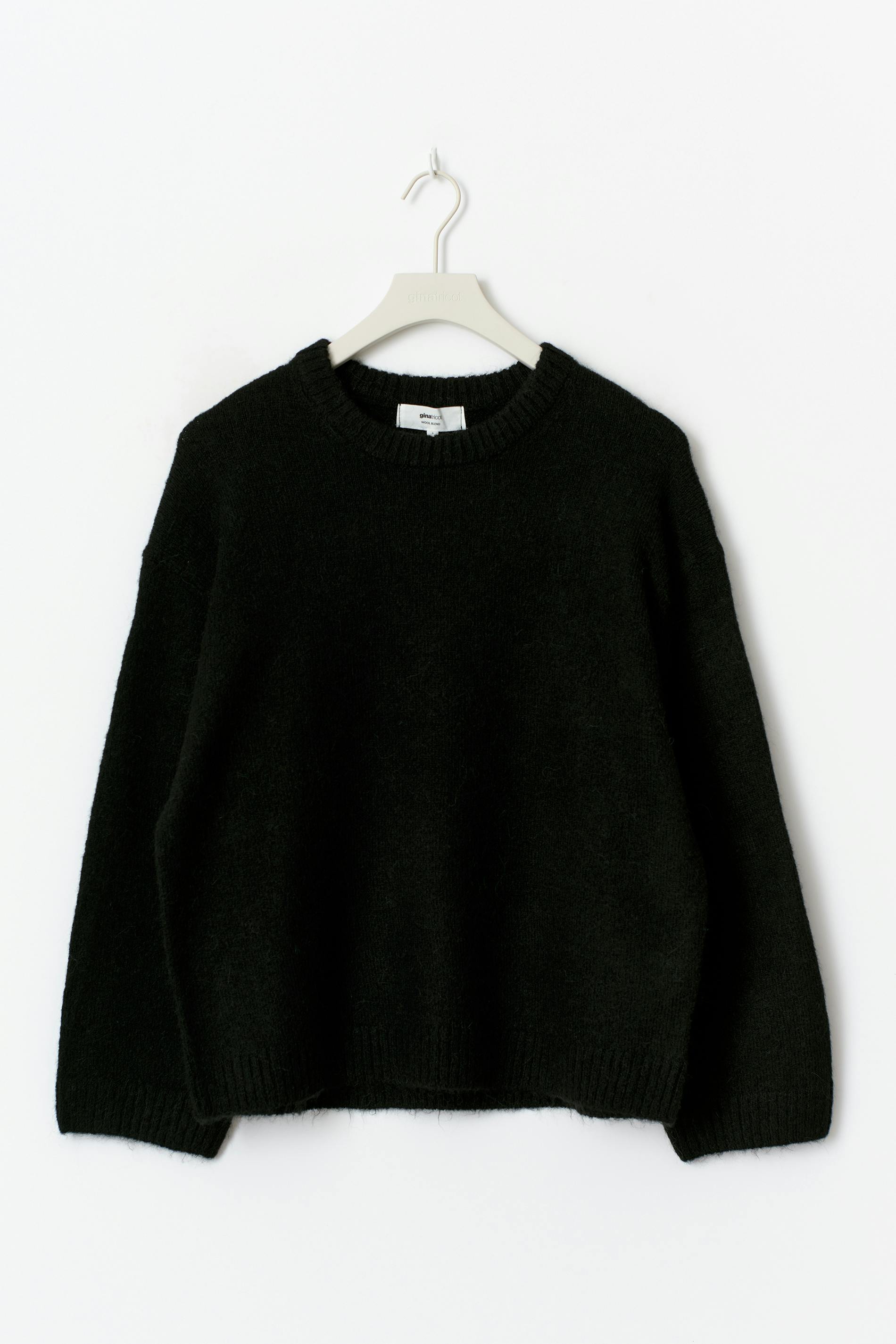 Knitted sweater with oversize fit. The sweat is black and has fine-knit quality. It has round neckline, long sleeve, regular length and rib knit at sleeve ends and at the bottom.