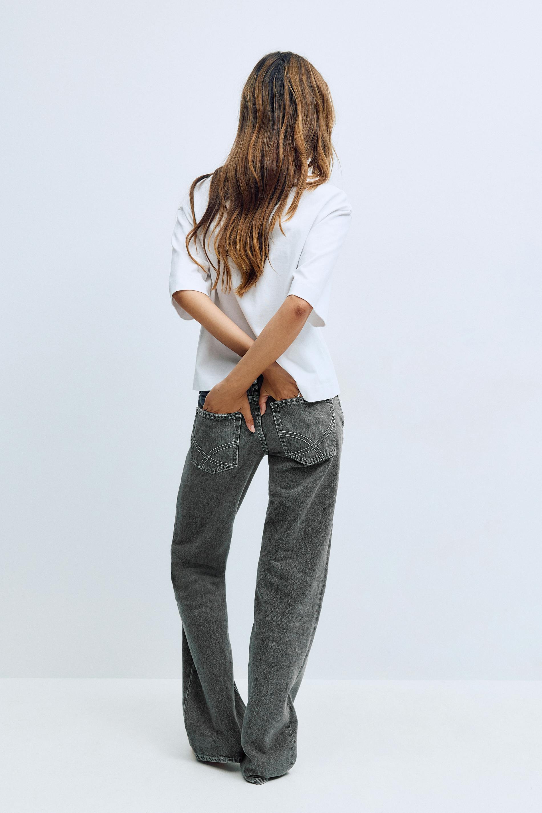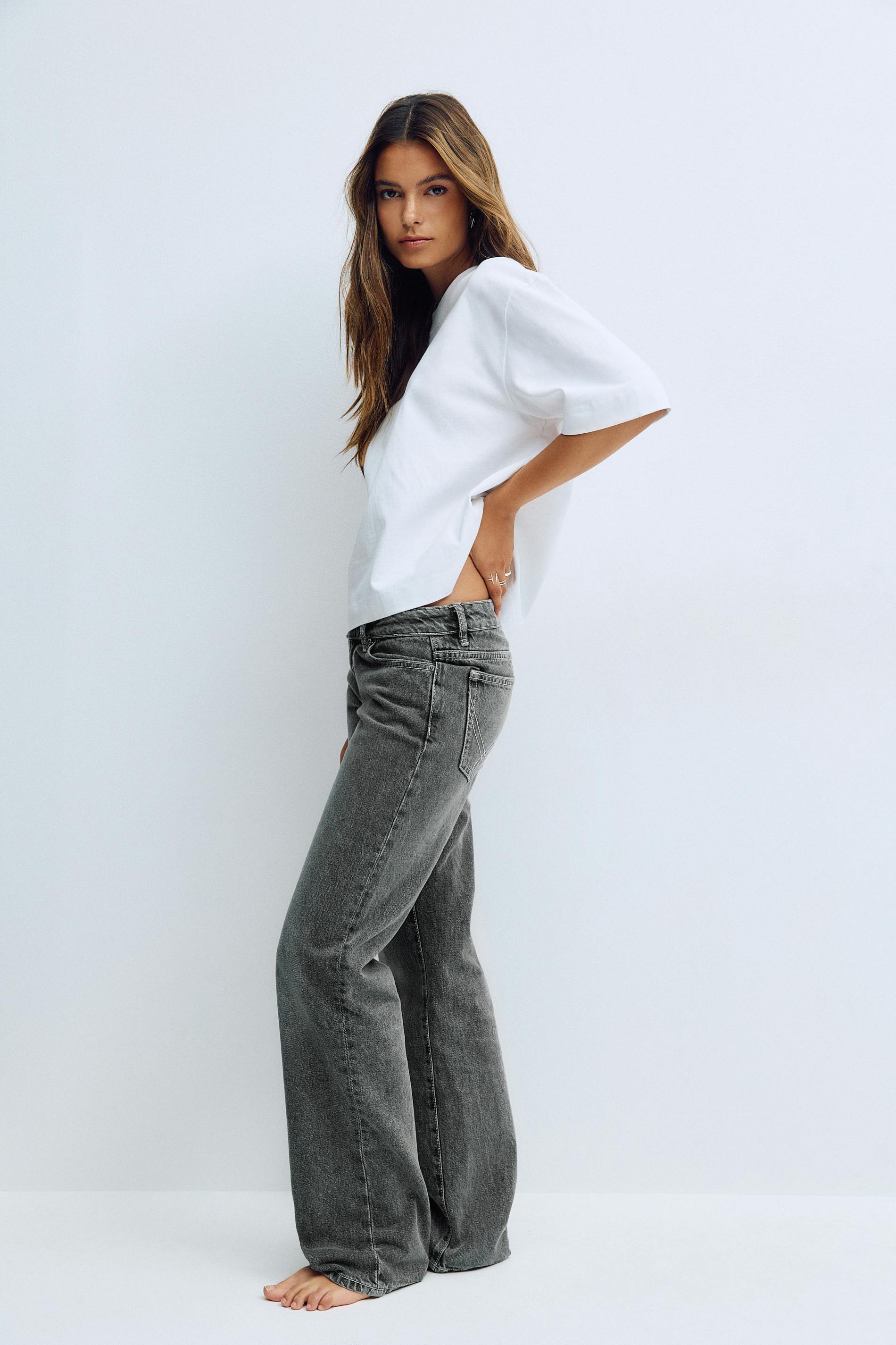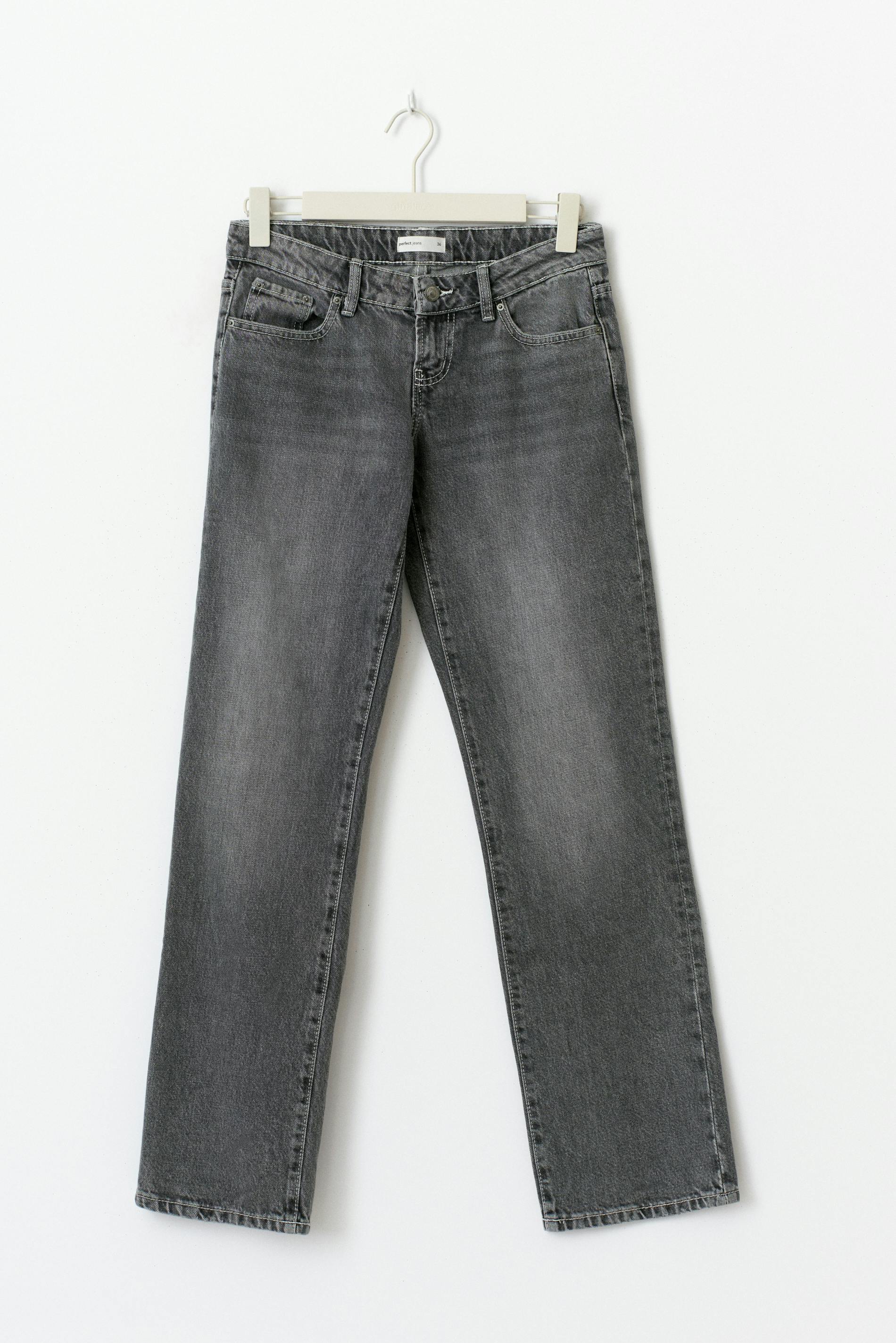 Straight jeans med låg midja i denim utan stretch. Jeansen är gråa och har raka ben med normallängd. De har dragkedjegylf och fickor fram och bak. Se gärna vår storleksguide för att hitta din storlek.