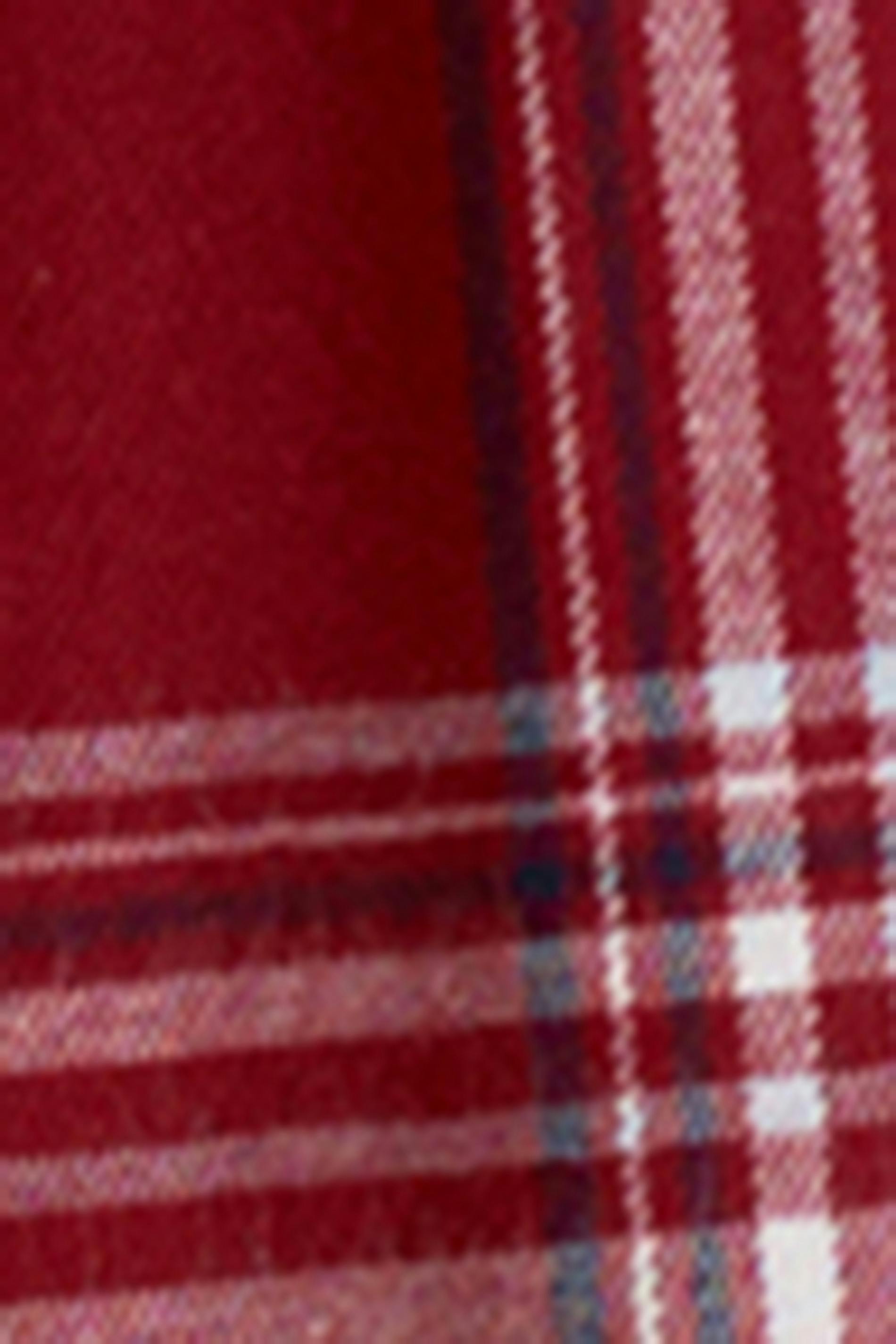Rutiga pyjamasbyxor i flanell med knytning framtill. Pyjamasbyxorna är röda och har medelhög midja med resår. De har raka ben med normallängd.