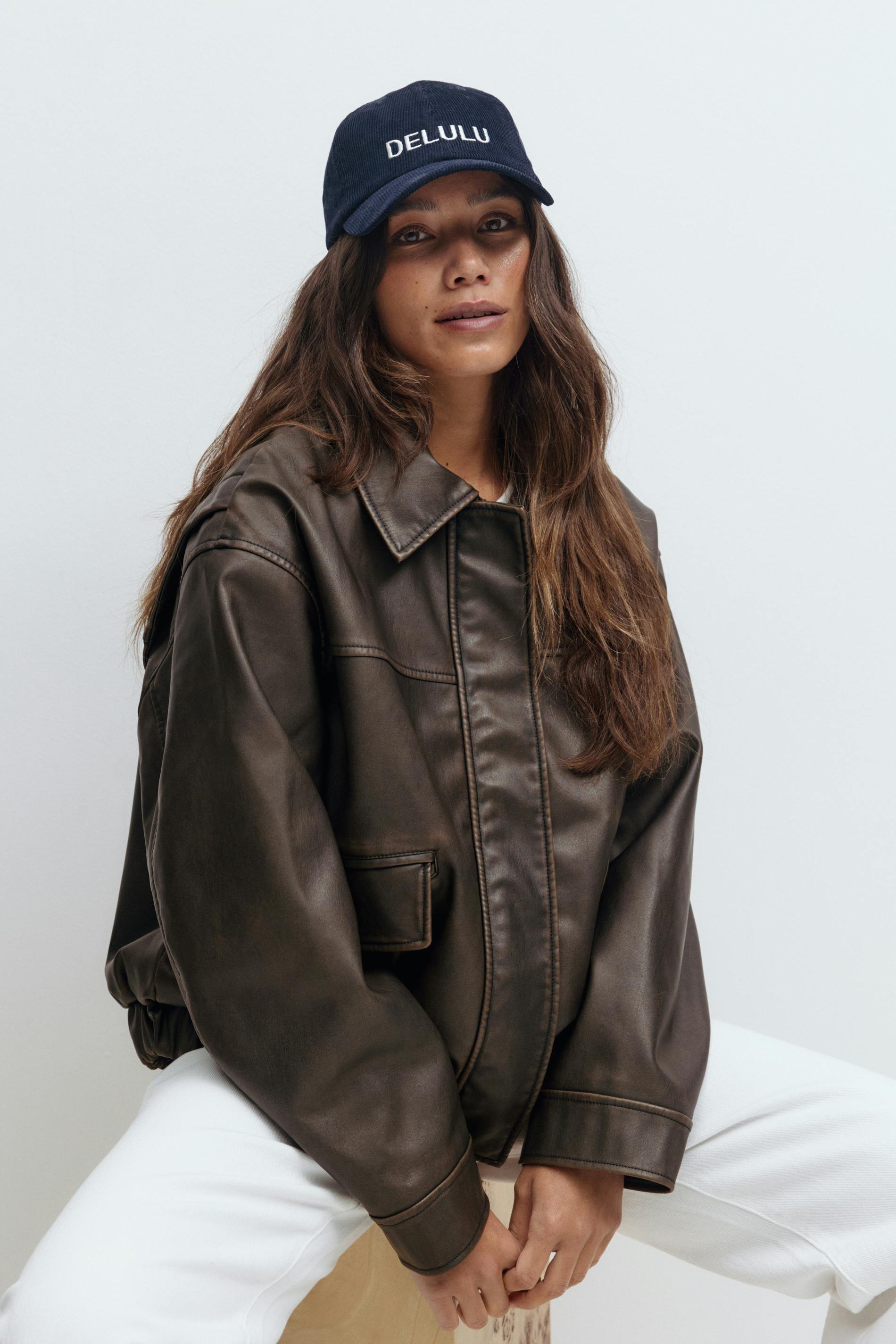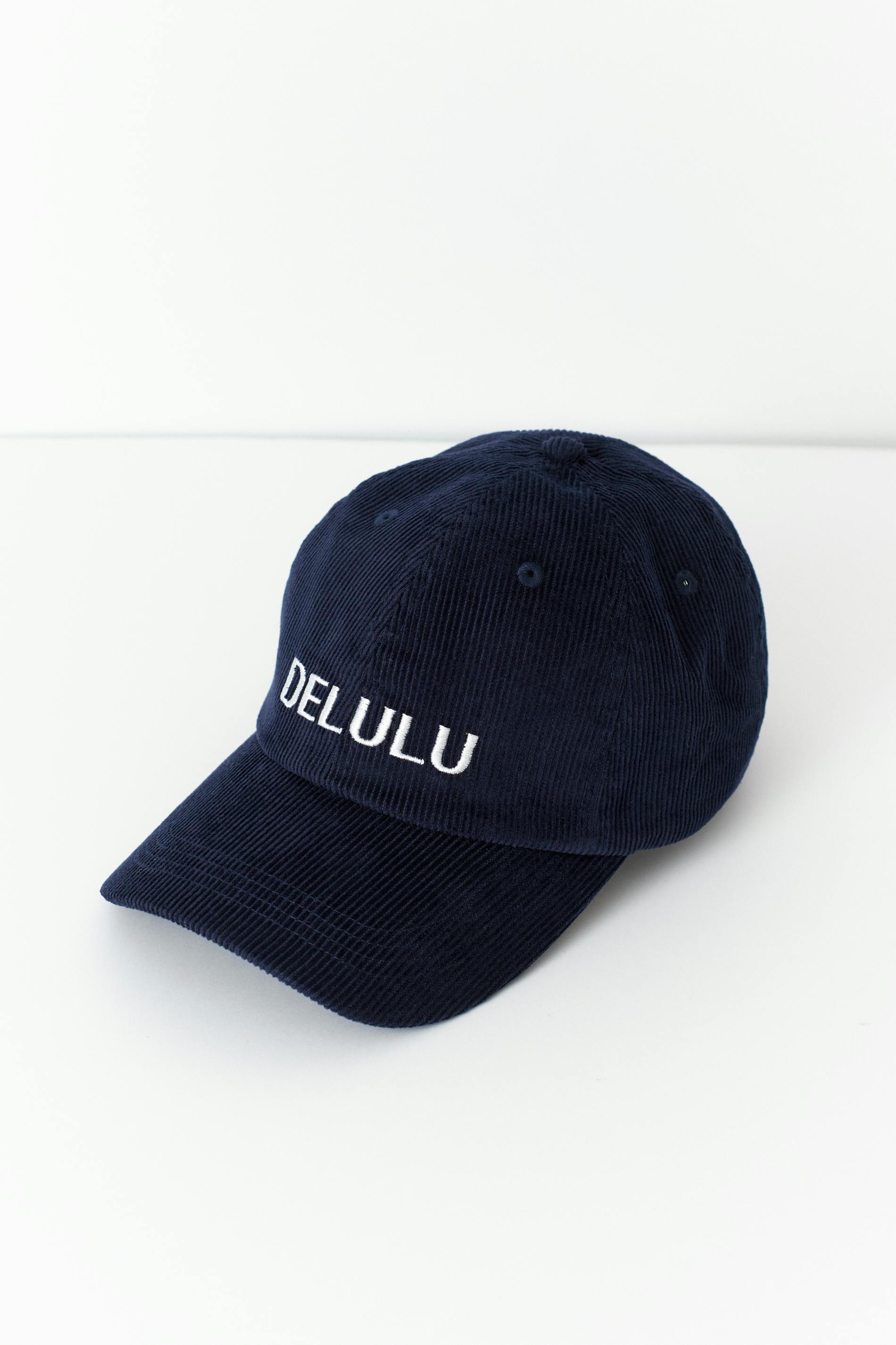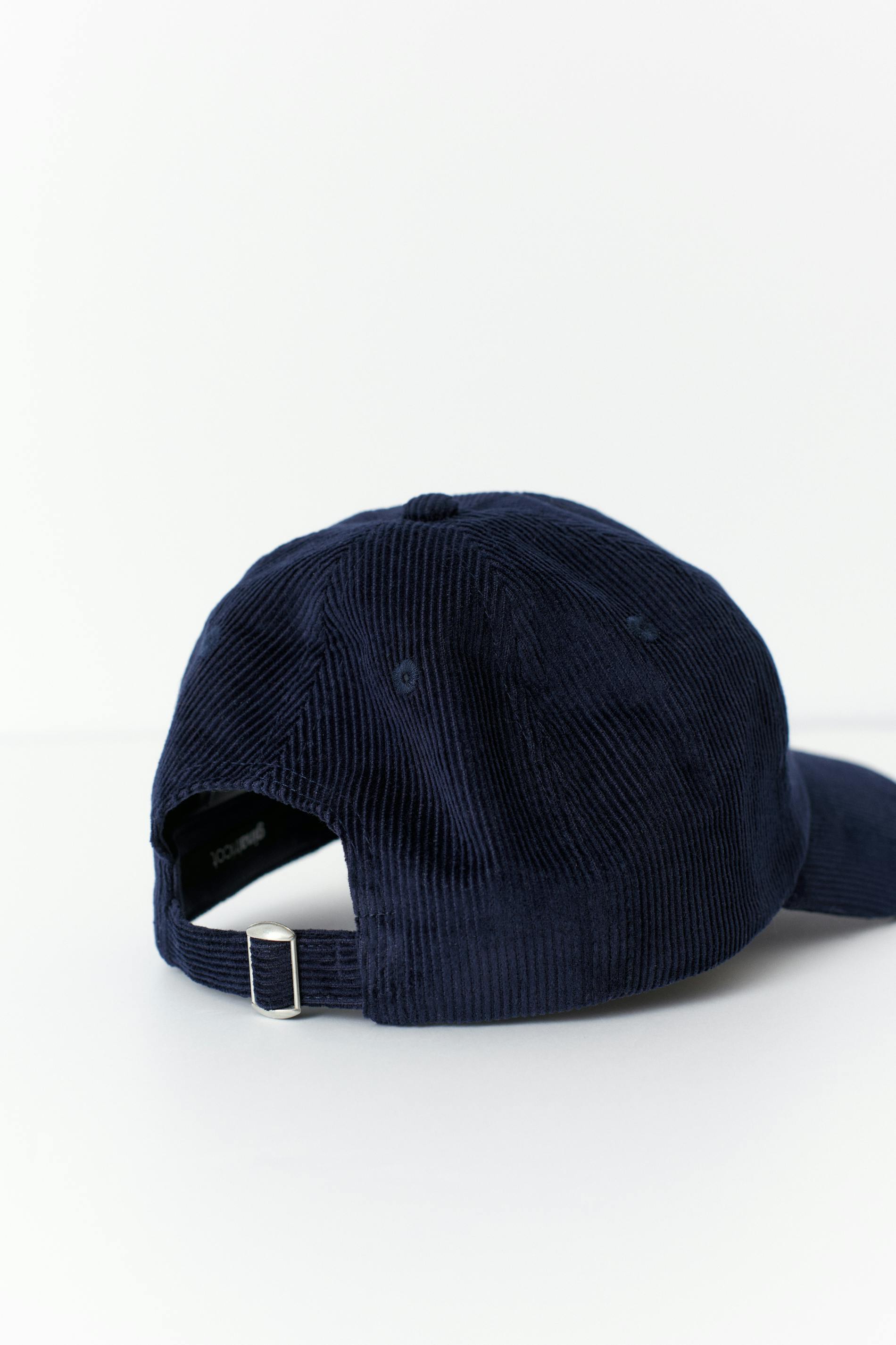 Keps i manchester med broderad text framtill. Kepsen är marinblå och har reglerbar slejf baktill.