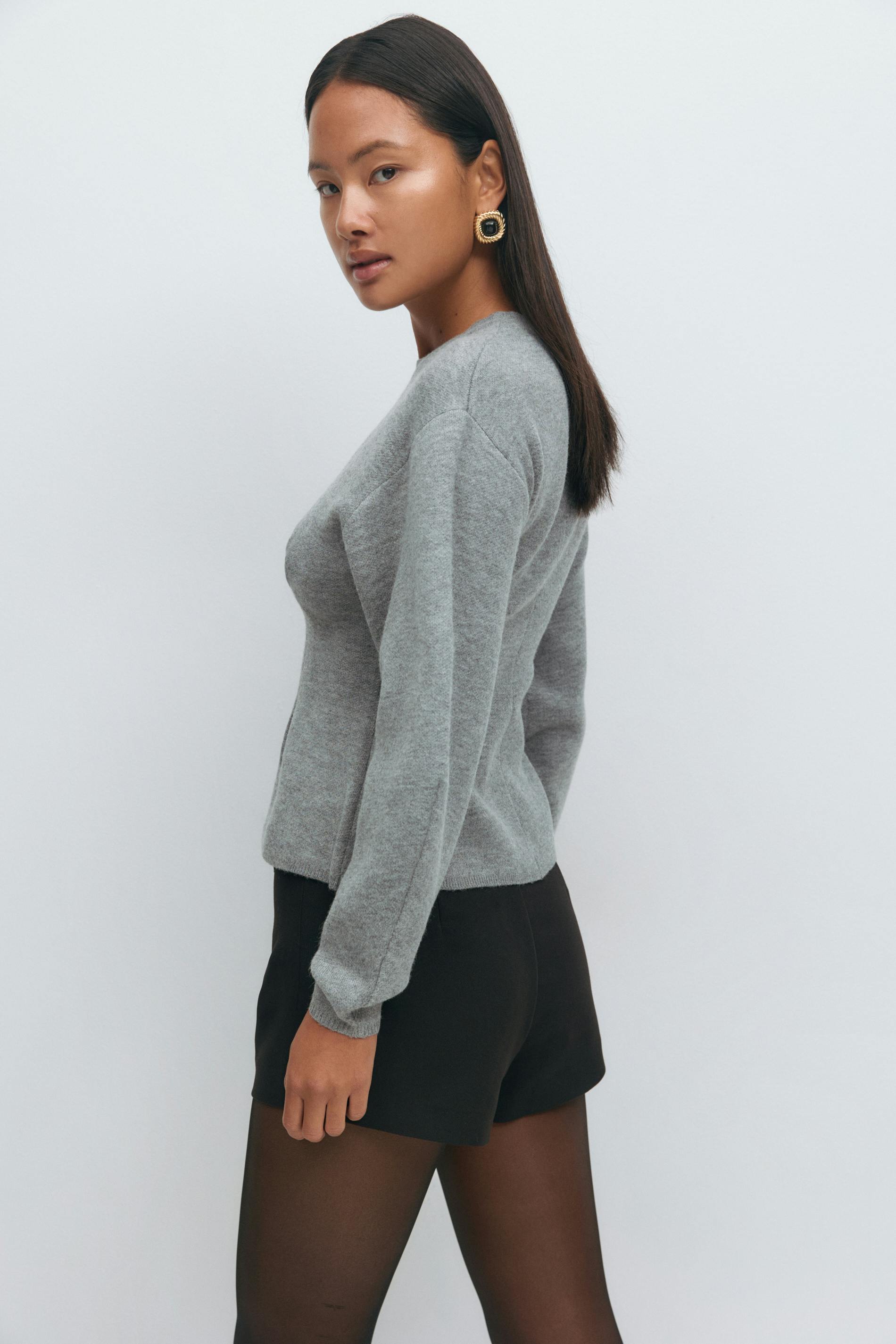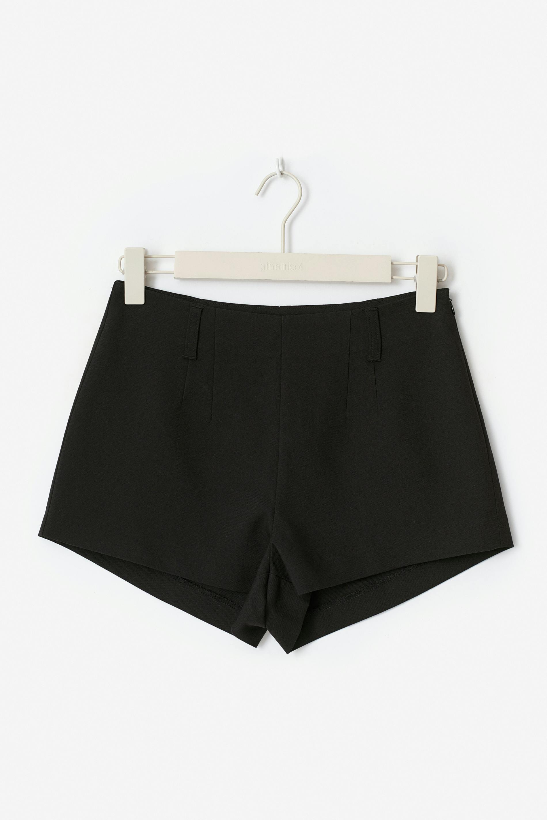 Korta kostymshorts med hög midja. Shortsen är svarta och har dragkedja i sidan. De har bälteshällor och normal passform.