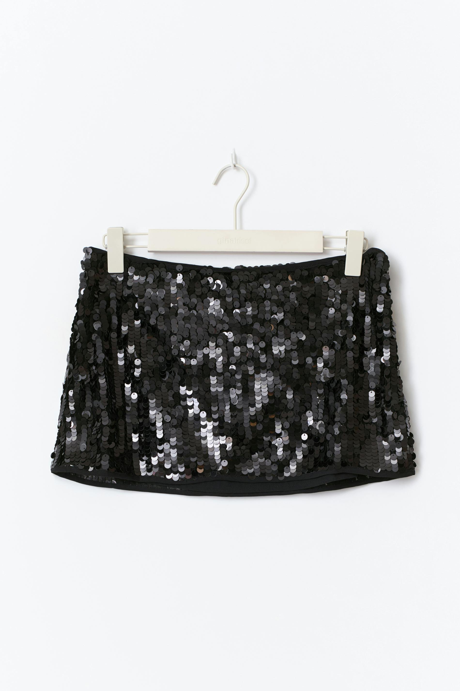 Kort kjol i paljett med en låg midja. Kjolen är svart och har en dragkedjestängning. Den har en normal passform.