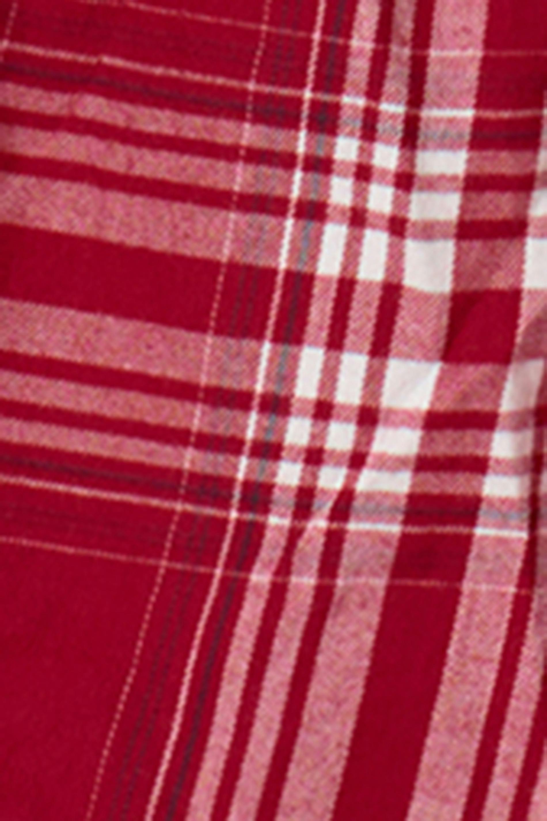Rutigt pyjamasset i flanell med en normal passform. Pyjamassetet är rött och har ett ärmlöst pyjamaslinne med reglerbara axelband. Det har en rosettdetalj under bysten, pyjamasshorts med en låg midja, ett knytband i midjan och en volang i nederkant.