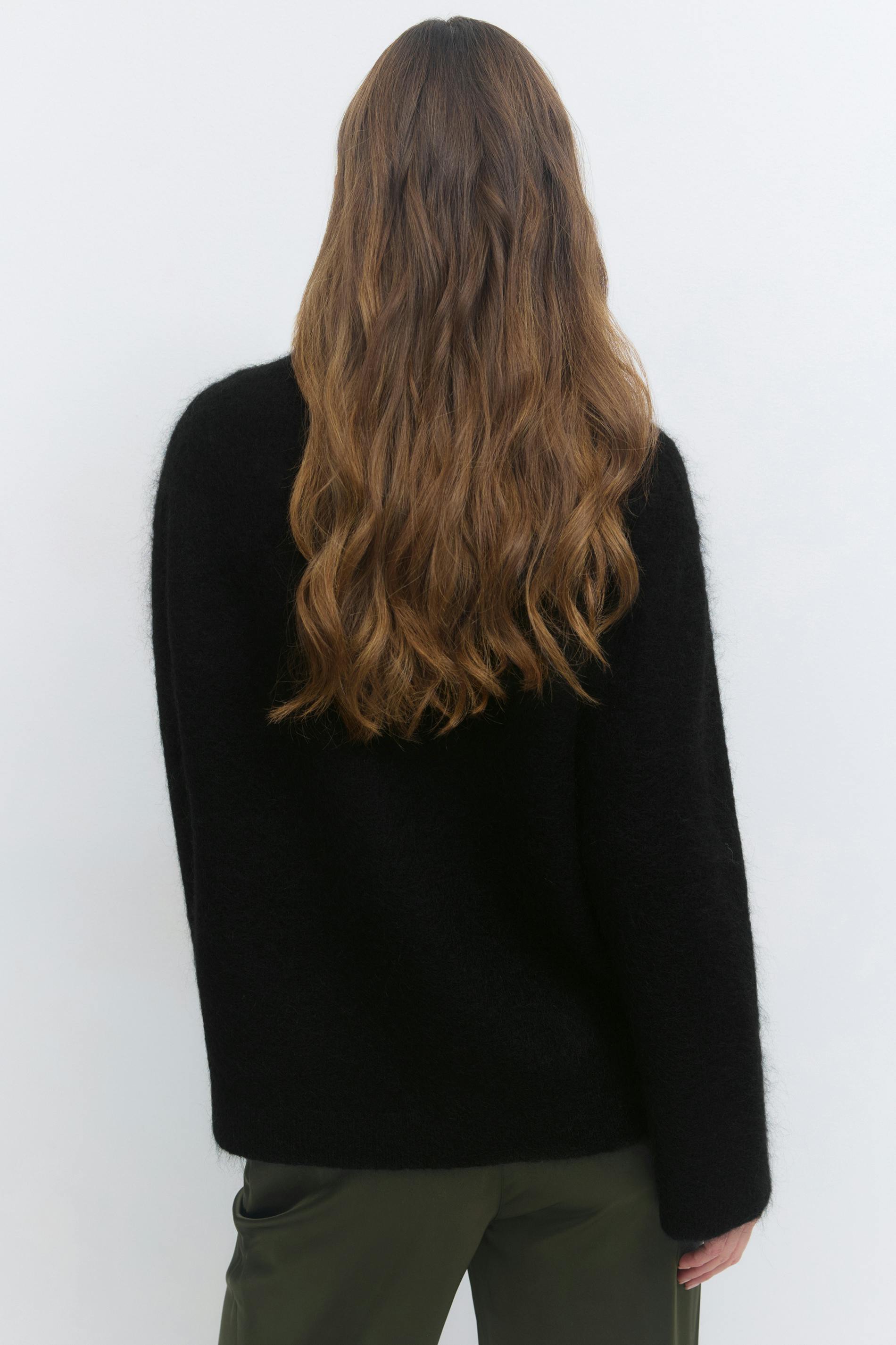 Stickad tröja i mohairmix med oversize fit. Tröjan är svart och har långa ärmar. Den har rund halsringning och ribbstickning vid ärmslut och i nederkant.