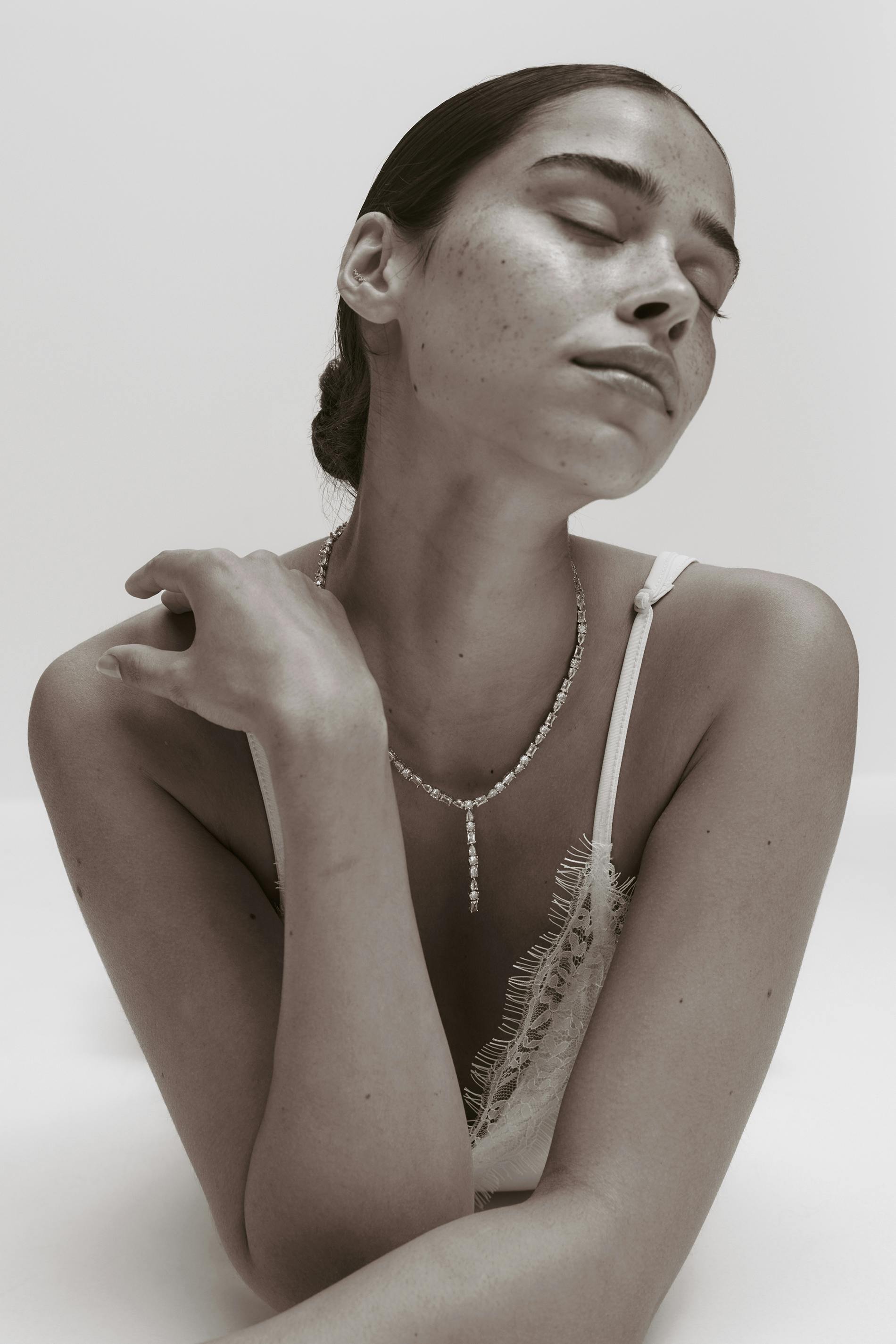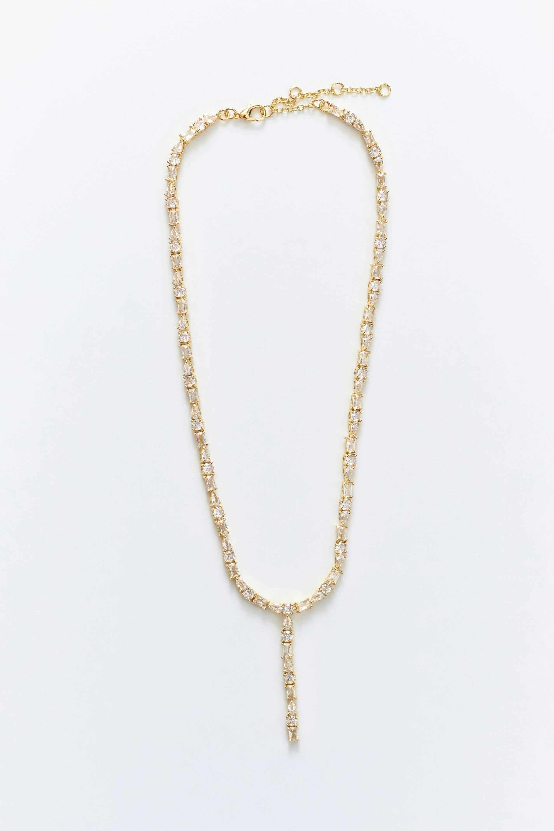 Halsband med strass. Smycket är guldfärgat.