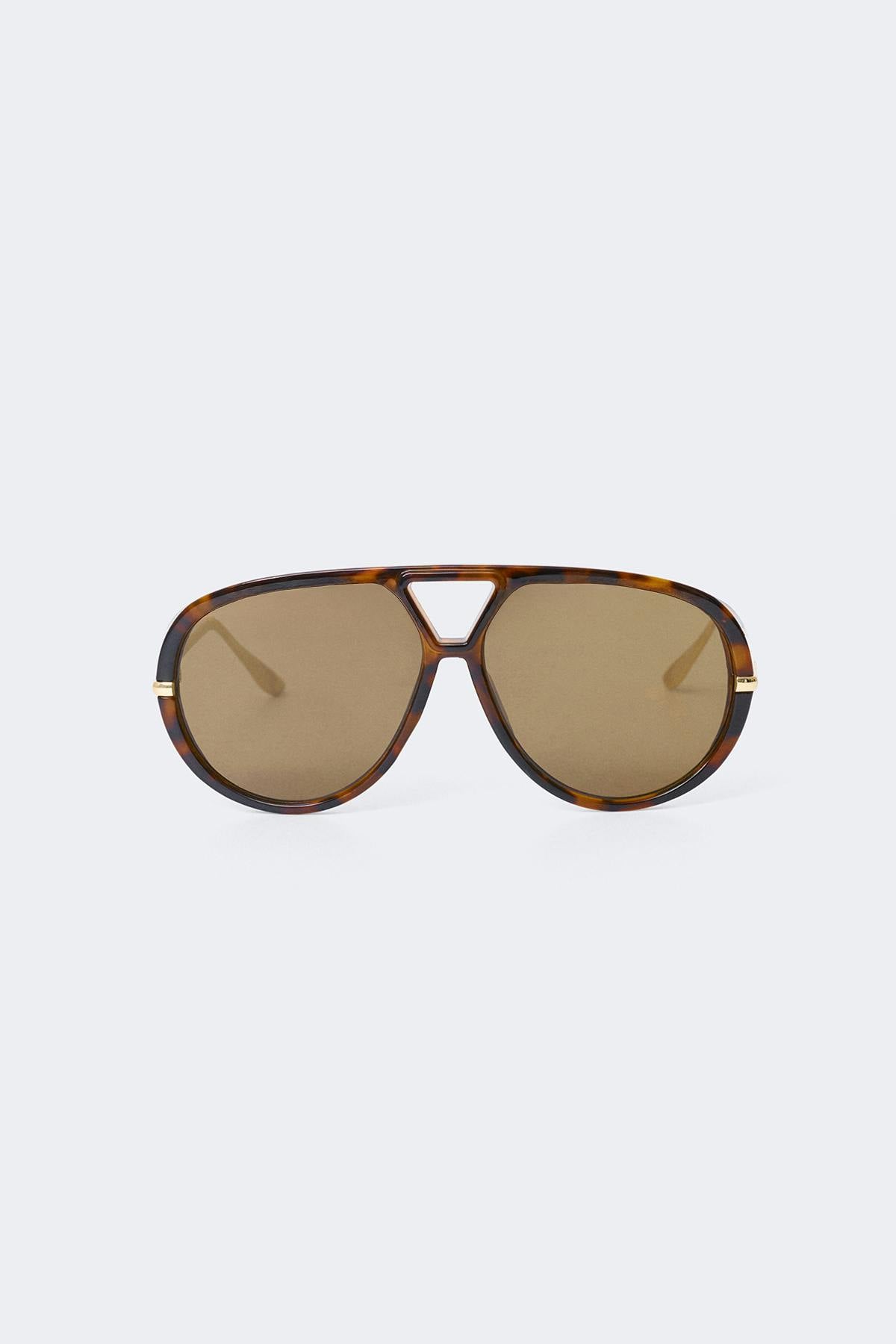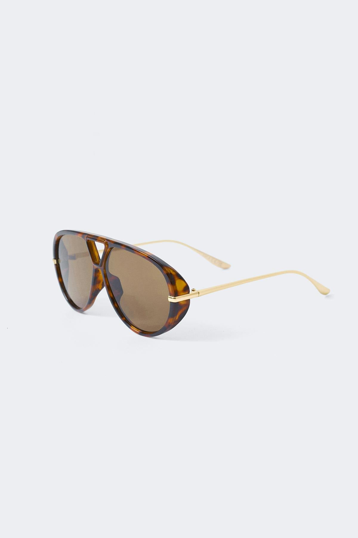 Sköldpaddsmönstrade pilot-solglasögon med tjocka bågar i plast. Solglasögonen är bruna och har smala, guldfärgade skalmar. De har tonade glas med UV400-skydd för att skydda dina ögon från de allra starkaste solstrålarna.