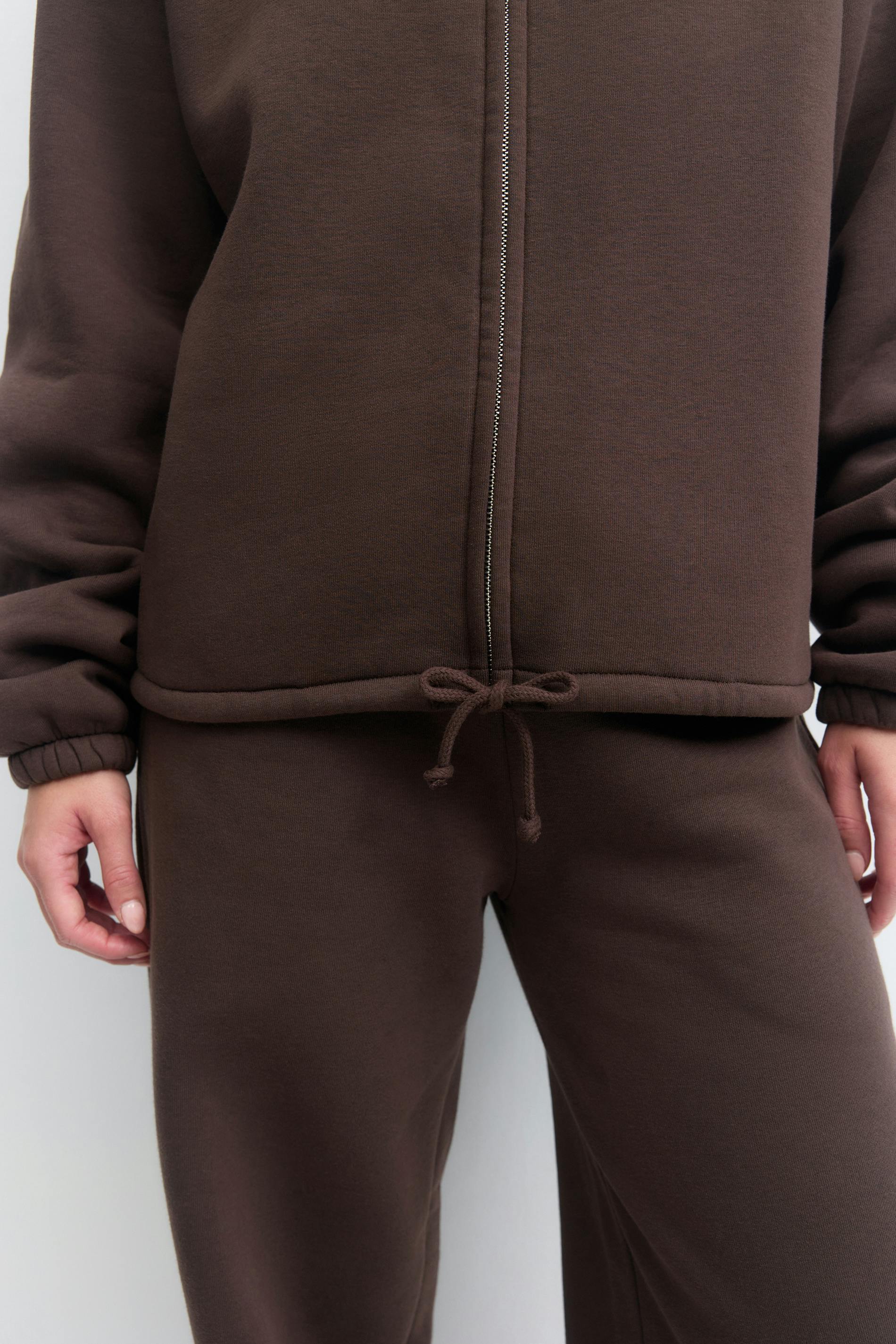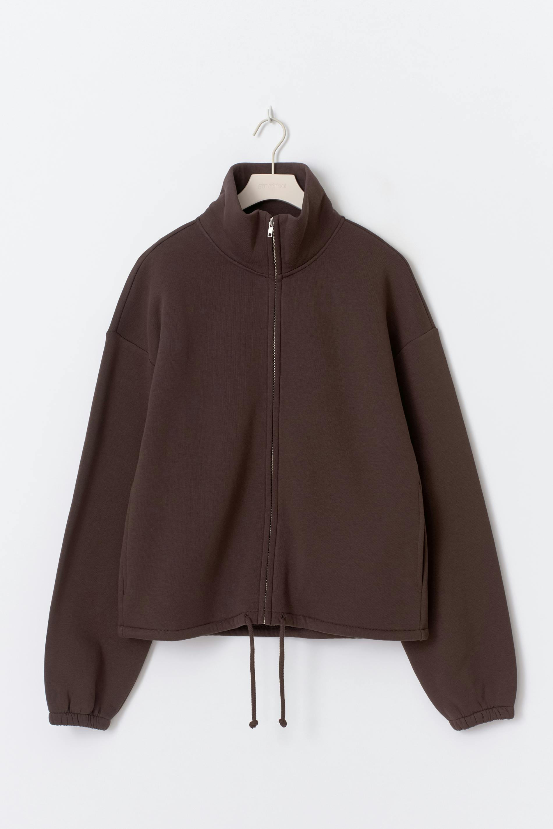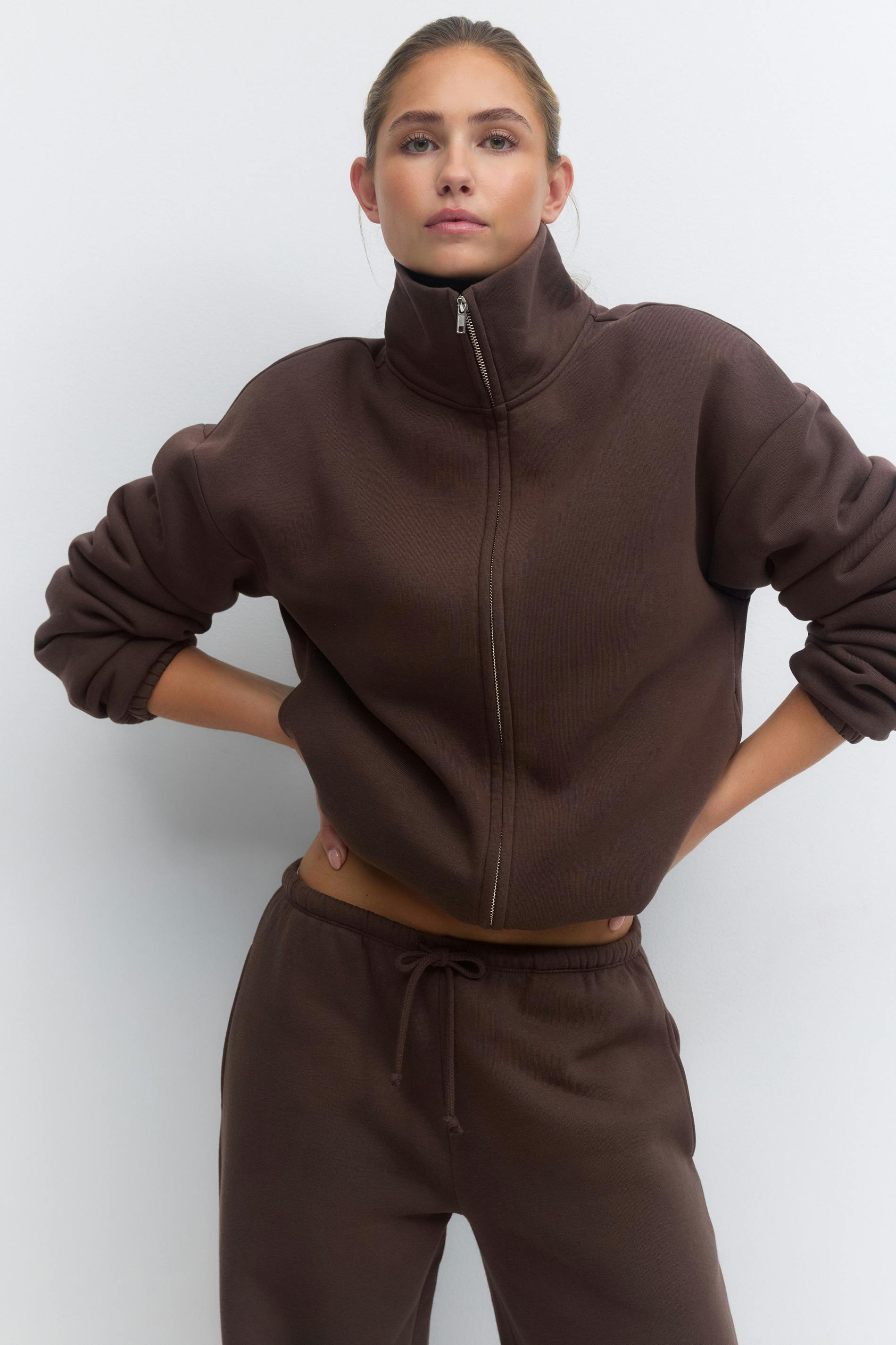 Sportig sweatshirt med hög krage. Sweatshirten är brun och har stängning med dragkedja framtill. Den har långa ärmar, knytbar dragsko vid fållen, fickor i sidorna, normal passform och mjuk kvalitet.