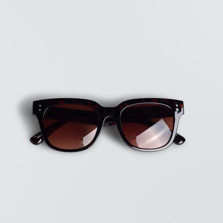 Classic sunglasses with plastic frames in recycled plastic. The sunglasses are brown and have tinted glasses with UV400 protection.